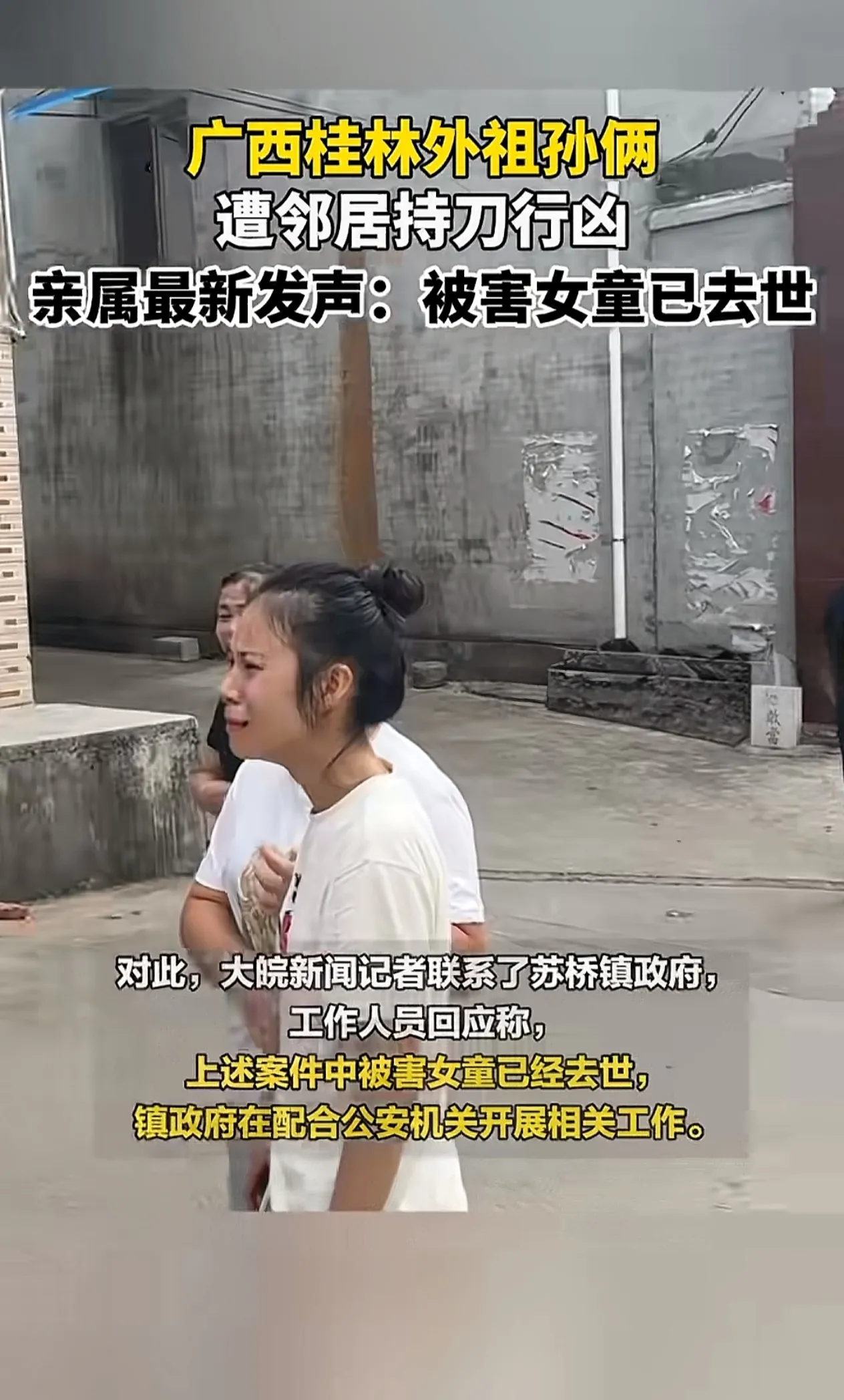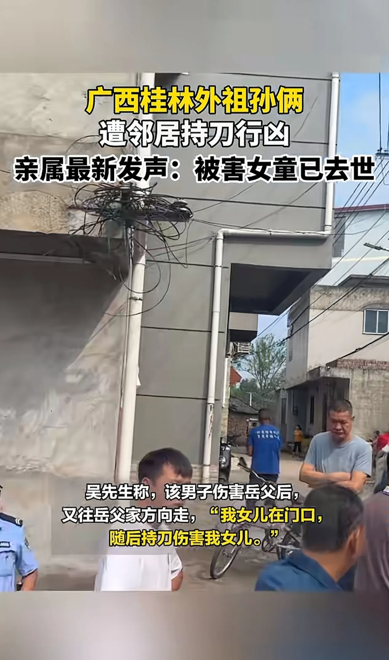 家属听到动静后从屋内跑出,女童父母家属试图安抚,行凶男子情绪但无效,行凶男子直接用刀挟持女童后并拖行至,附近约50多米处,用刀疯狂砍向女童的头部以及身体,作案后聋哑男邻居想迅速逃跑,被女童家属制服控制住,女童和她的外公被紧急送往医院抢救治疗,经过一天的抢救但还是无力回天,女童因伤势过重,于9月18日下午在医院去世,而女童外公,目前仍然躺在重症监护室进行观察。