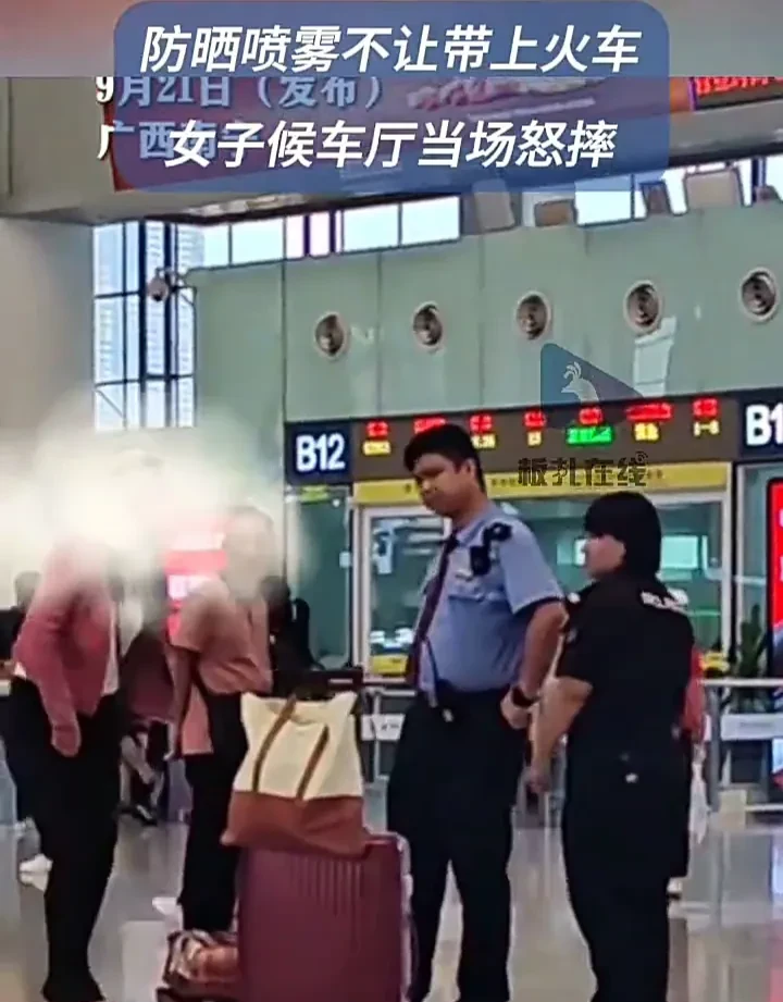太奇葩了!近日,广西南宁一位网友发视频称,在火车站候车厅内,由于工作人员不让一名女子携带防晒喷雾进站,女子气愤之下,便当众怒摔喷雾,并大喊:“这样够了吗?”对此12306客服回应,可以带,但不能超150毫升!