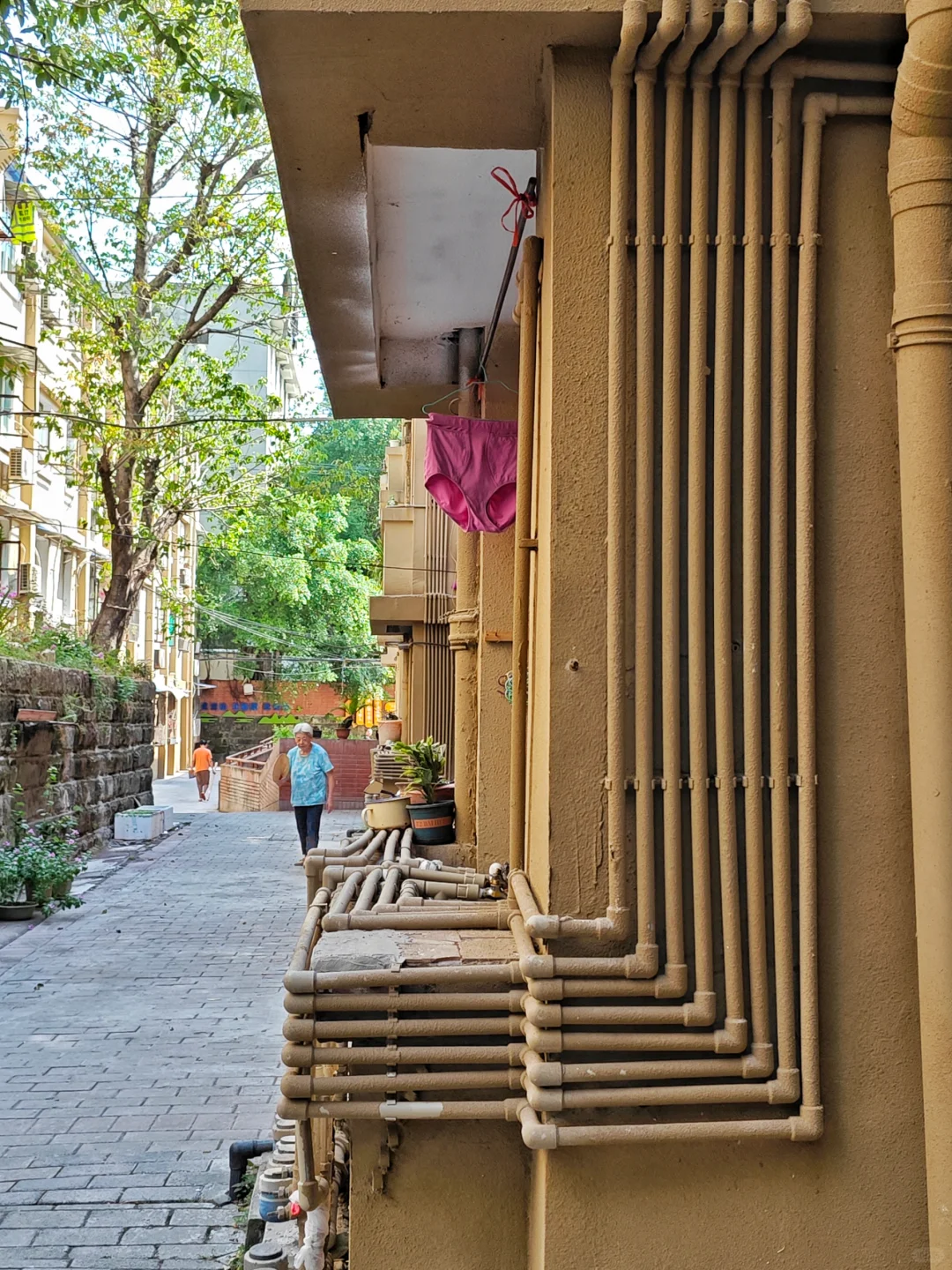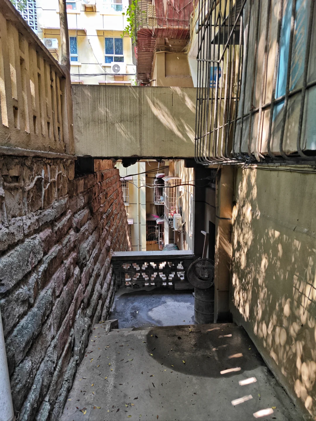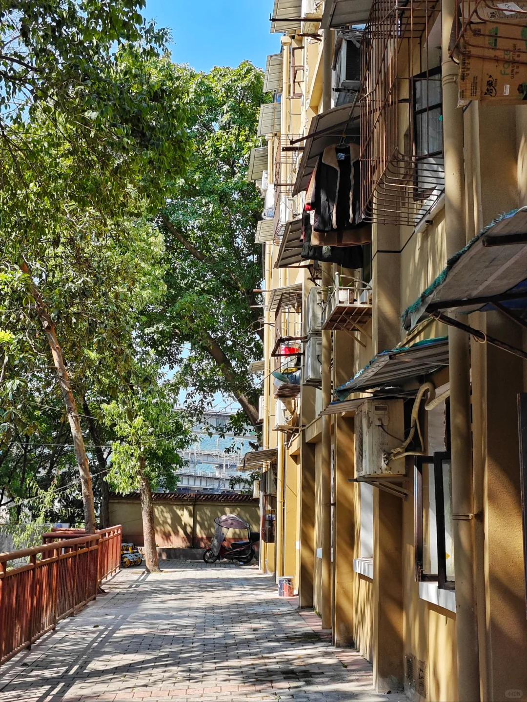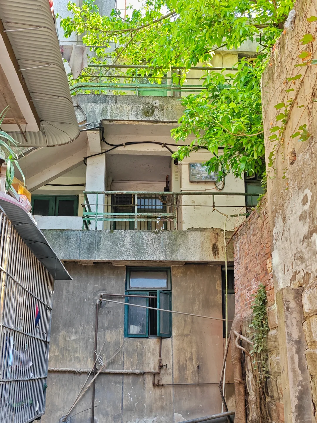 因为油泵油嘴厂已经搬到回兴,半边街这里面只剩以前的家属楼。上次说了这些家属楼从1960年代到1980年代,从红砖筒子楼到后来的套房家属楼,都有。这里的红砖楼其实不算筒子楼,因为不是每层全部拉通,而是有各自的套间,独立厨房。这在当时的国企家属楼建筑风格上算是比较先进的,只是当时没修独立厕所,导致后来大家不得不自己加装,采用接在楼房外墙的排污管。总的来说,这里比起重庆很多同类其他中/小型国企同时代的家属楼,算可以的。想起我在川外附近无线电厂家属区看到的那几栋家属楼,大石坝九村重庆搪瓷厂家属楼,以及南岸黄家巷重庆茶厂家属楼等等,这些同时代的家属楼就脏乱差破得多,硬件软件条件都差了很多。