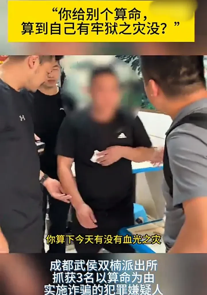 9月20日,四川成都武侯双楠派出所,抓获了3名以算命为由实施诈骗的嫌疑人,之后民警询问其中一名男子:“你自己相不相信算命这东西?”该男子回答:“不相信!”并表示他们几人主要是为了骗钱。