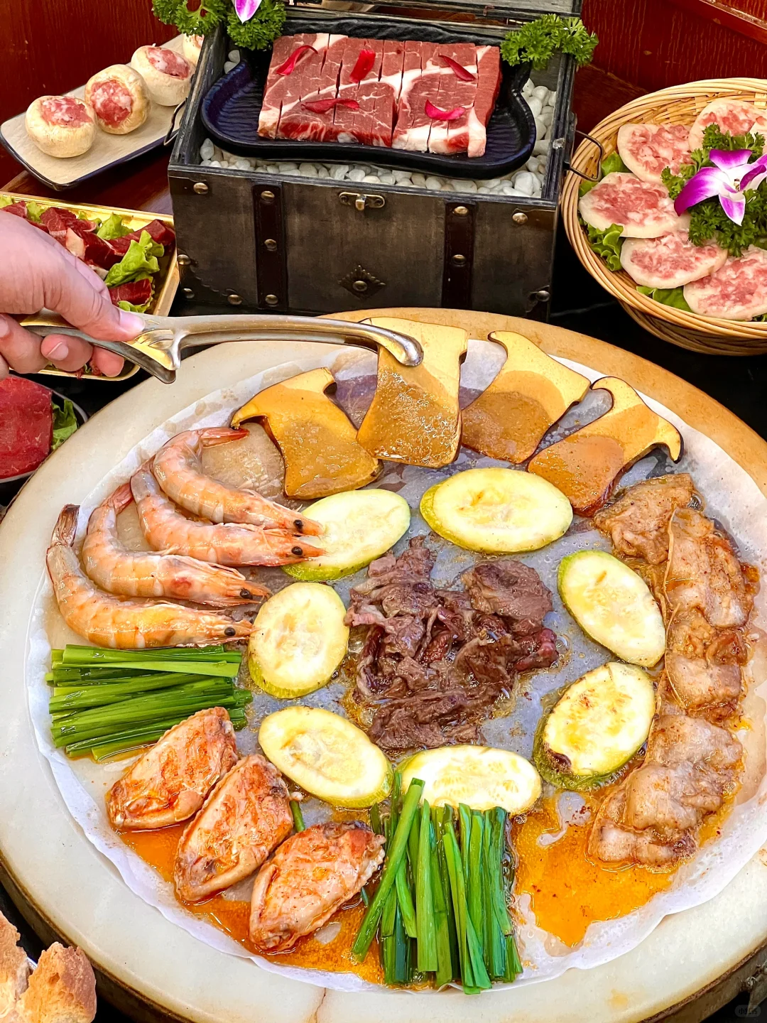 还牛肝菌,雪花牛排、包浆豆腐、炭烤大虾…