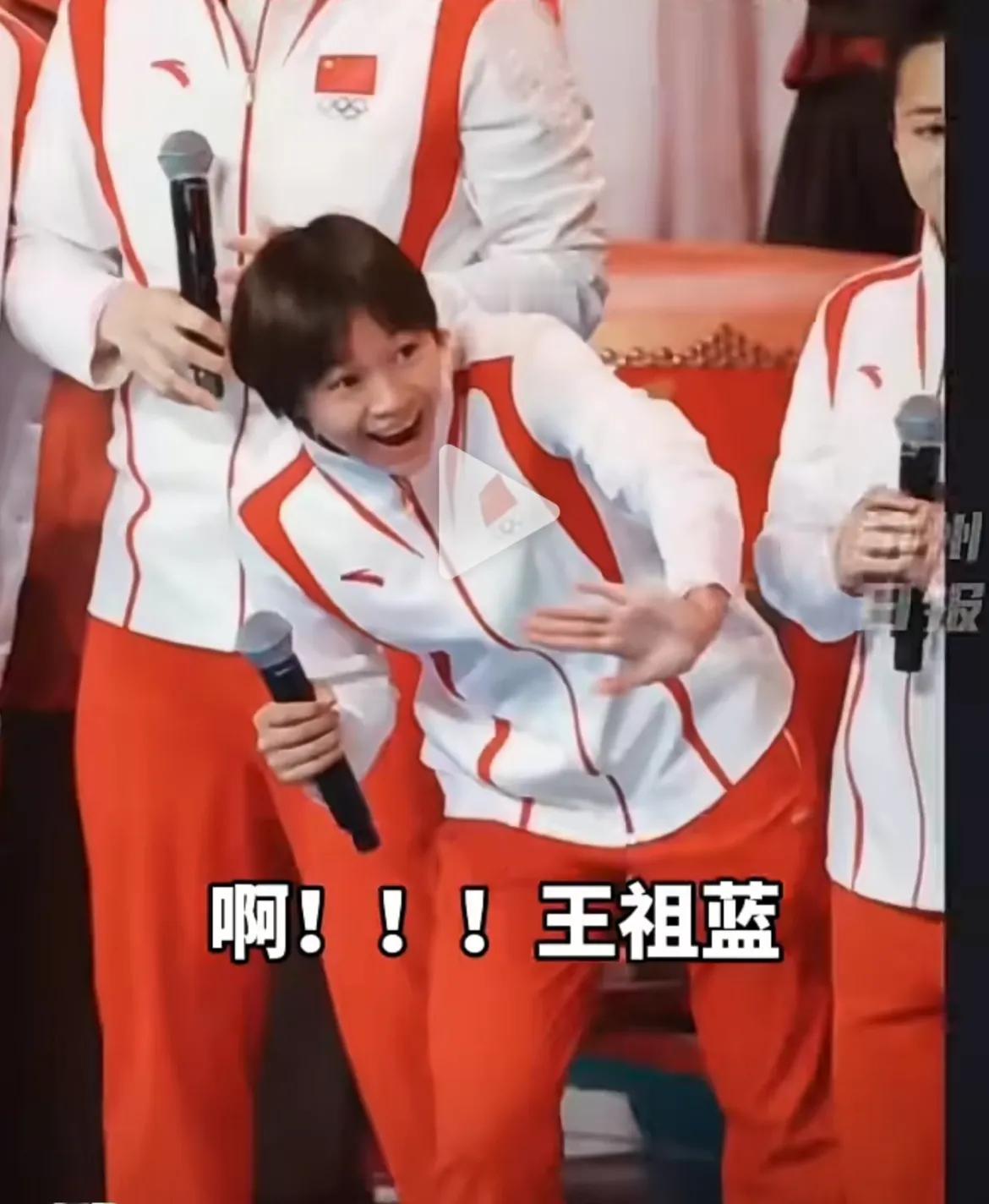 湾区升明月晚会,全红婵王祖蓝又见面了! 婵宝被王祖蓝叫到瞬间,惊讶的伸手和王祖蓝疯狂的双脚打着招呼,这种独特的打招呼方式太可爱、太搞笑了!真是一对大活宝,红蓝强强组合!(网图侵删)
