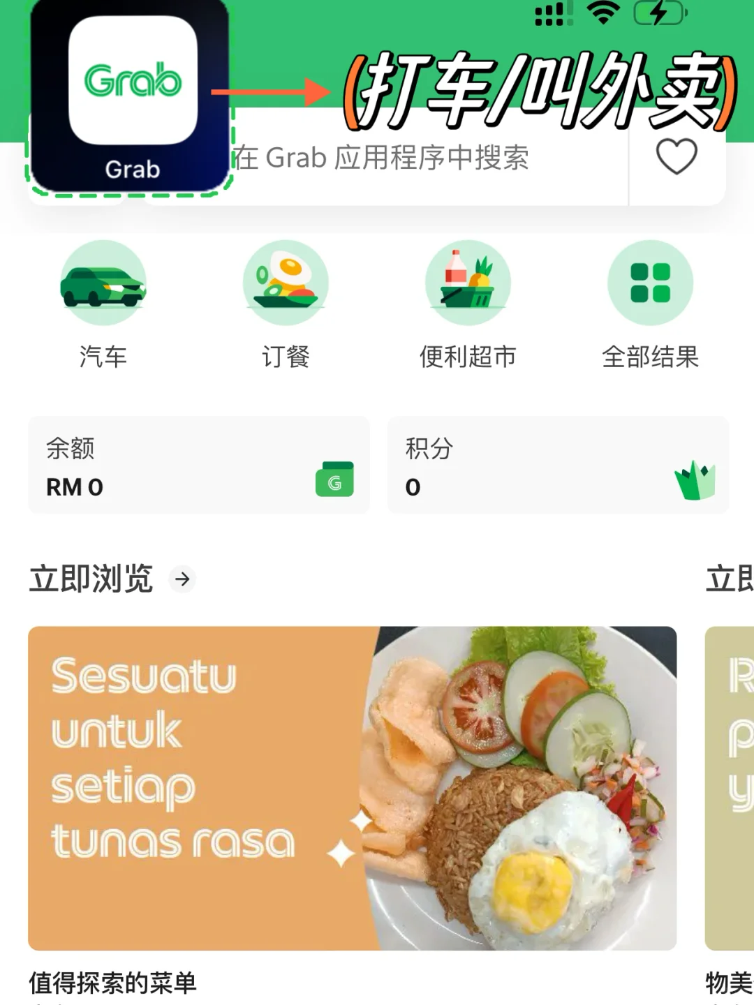 Grab不仅可以用来打车,还能点外卖,类似于国内某团
