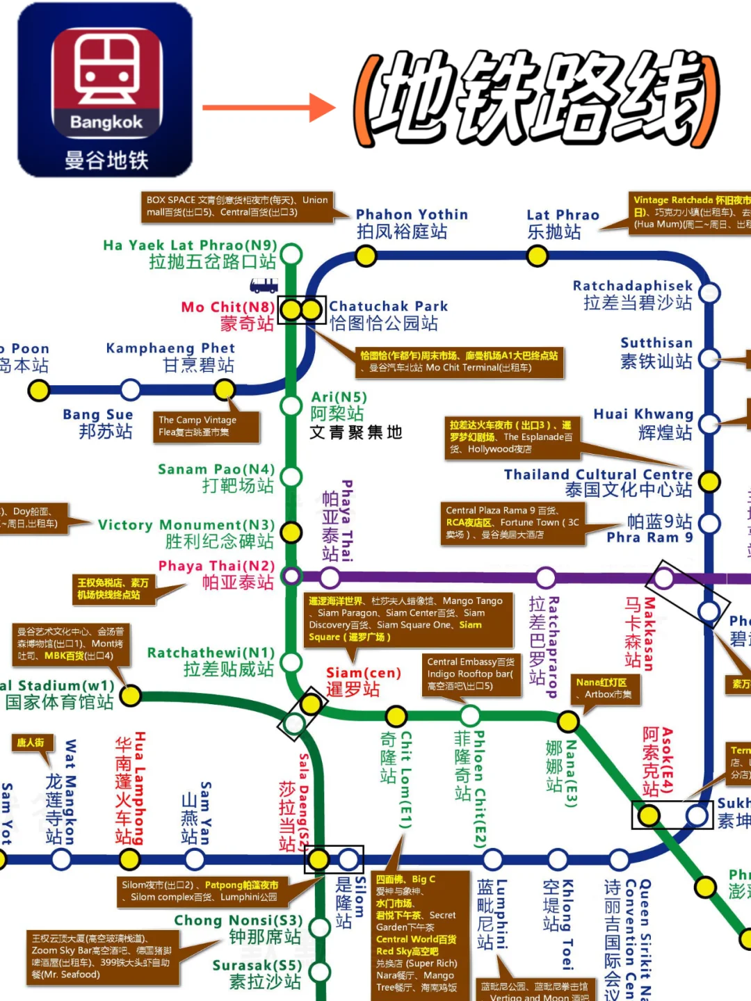 🚇轨道交通查路线下载曼谷地铁Bangkok