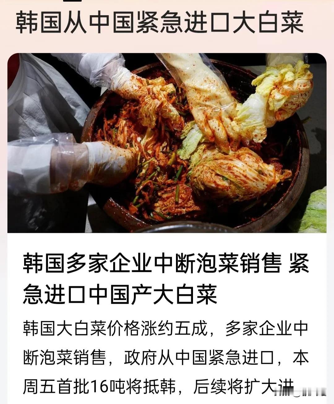 今日新闻,因韩国大白菜价格涨价约五成,韩国紧急从中国进口16吨大白菜。不知朝鲜金正恩大老板需不需要我们的大白菜呢?冬天快要来了,多做点泡菜好过冬啊!