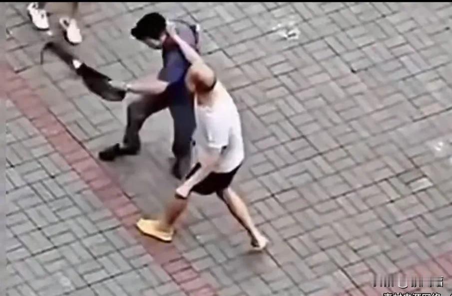 这大爷右手一勾拳,左手一直捶,男子被打懵了,大爷打得男子一点脾气都没有。看来大爷可能是一名退伍老兵,这都是军体拳招式啊。