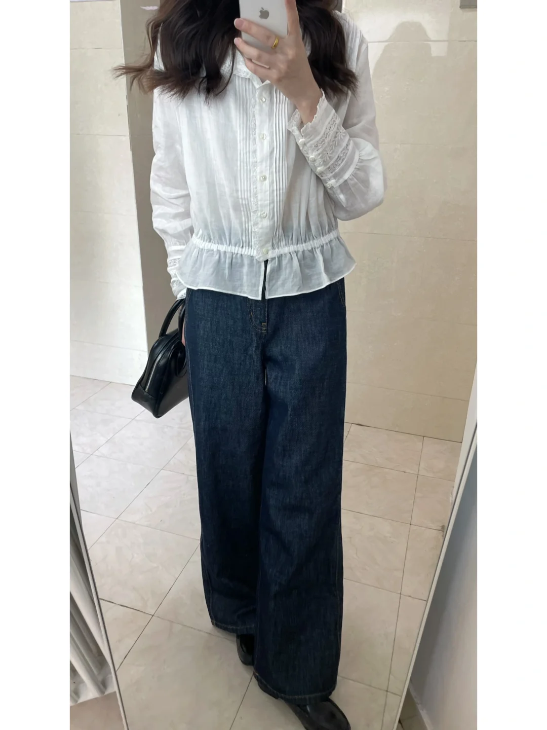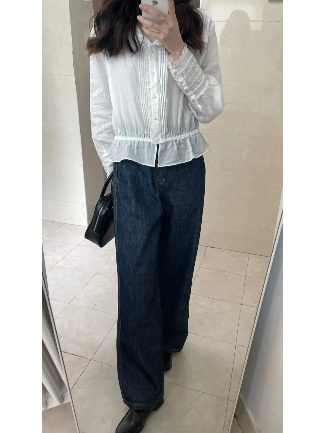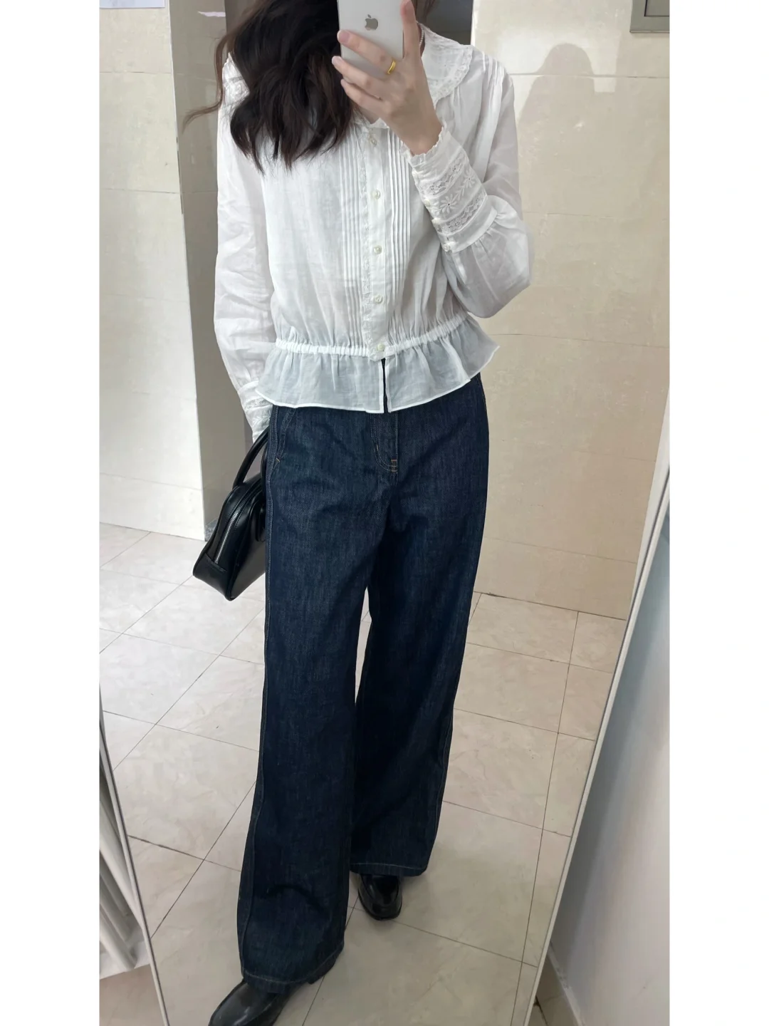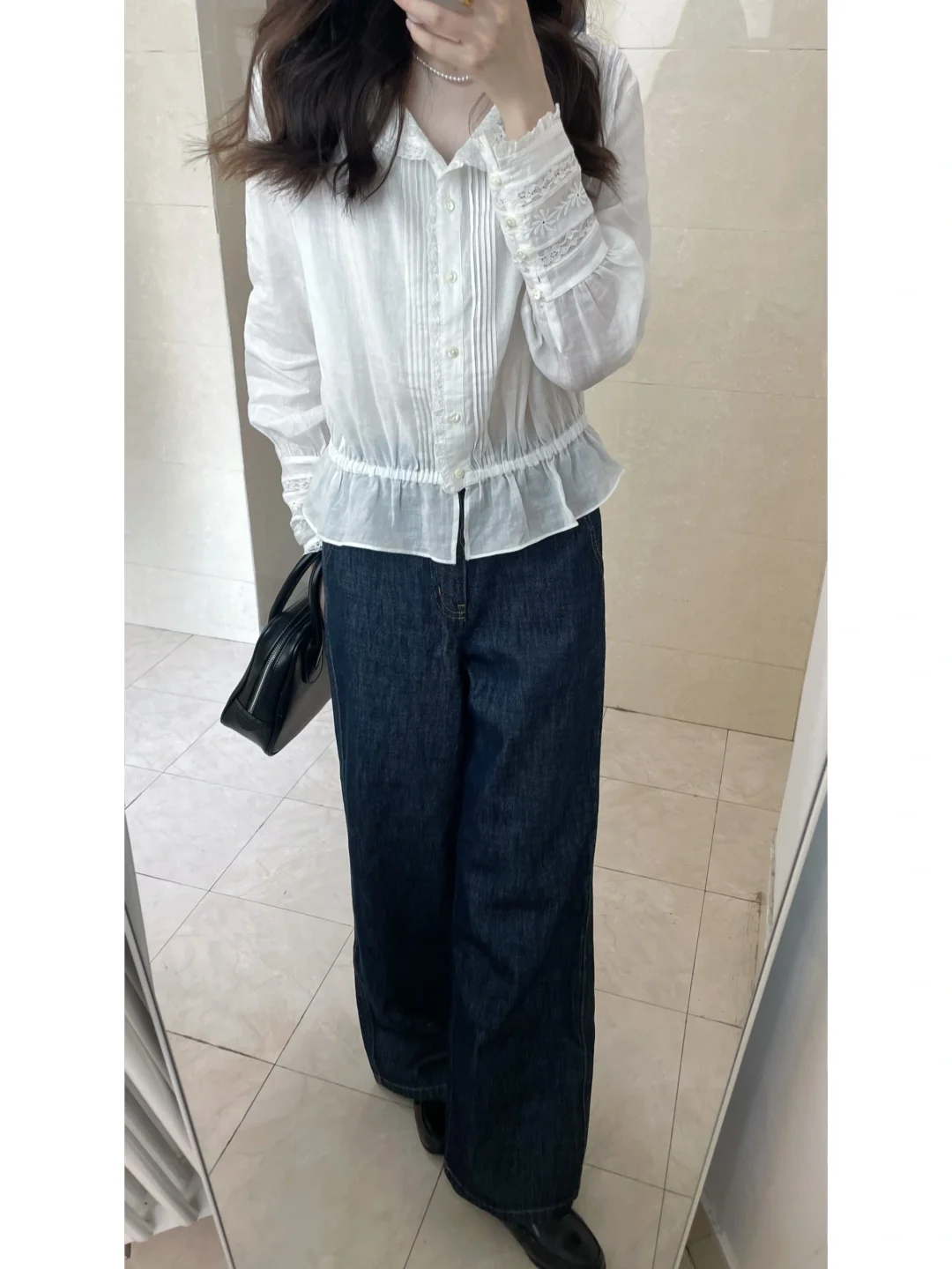 法式衬衫 cleanfit简单出门 极简穿搭 通勤穿搭 蕾丝上衣ootd每日穿搭