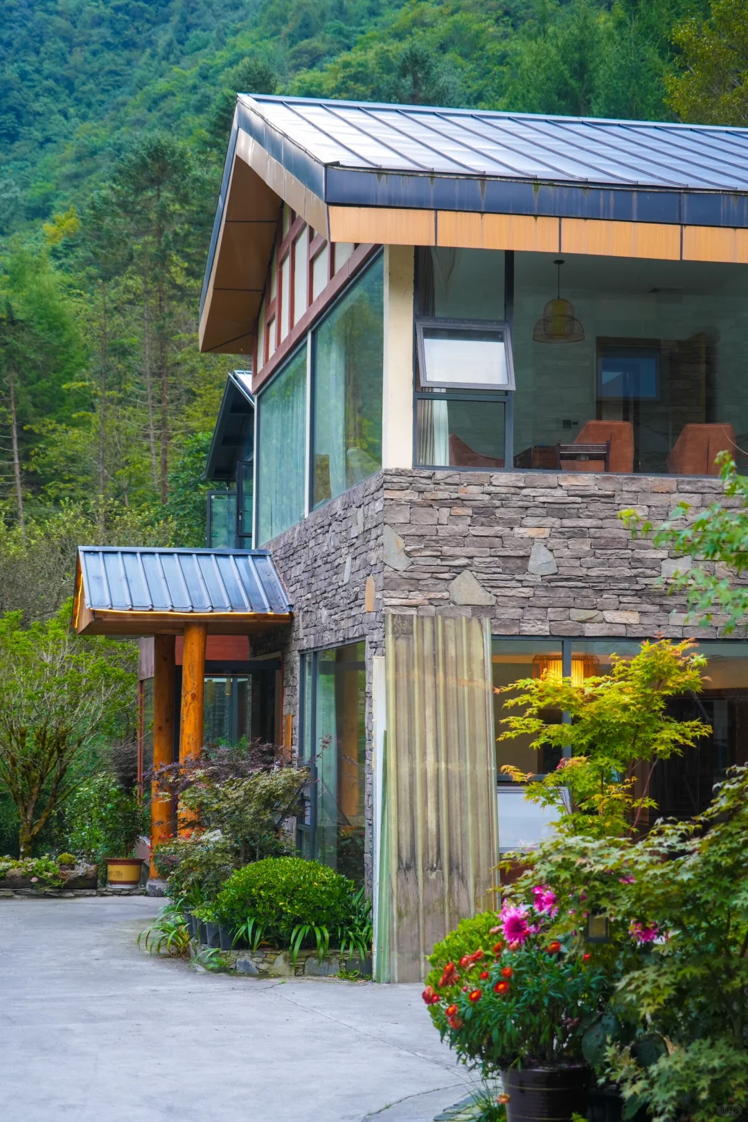 🌟依山傍水:民宿位于卧龙大熊猫国家公园的熊猫湖畔,可以说是依山傍水,整个民宿宛如掩映在一片绿植之中,有种莫奈花园的即视感