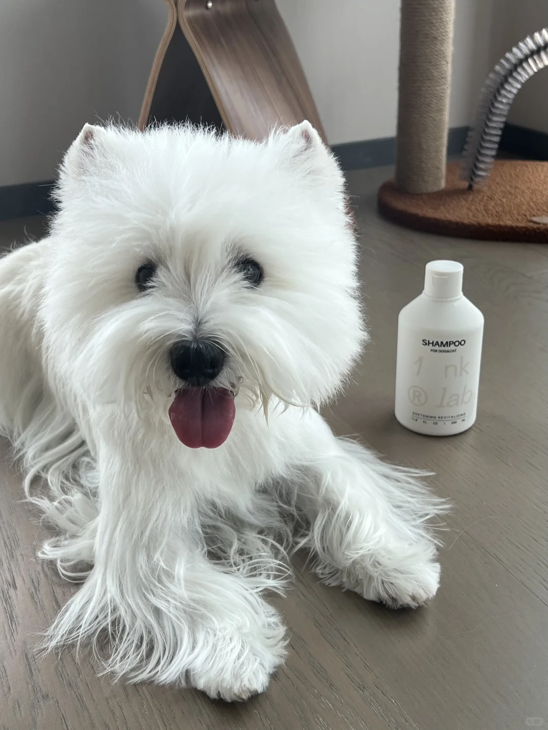 我一般还会用在腿部和尾巴上 稍加按摩就可 遇水就乳化、也好冲洗 洗完腿毛嘎嘎的顺[哇R]