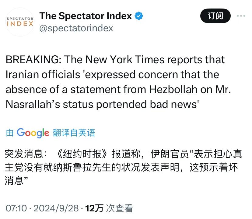 突发消息:《纽约时报》报道称,“以色列情报部门初步评估认为纳斯鲁拉已被击毙。” 此外,《纽约时报》还报道称,伊朗官员“表示担心真主党没有就纳斯鲁拉先生的状况发表声明,这预示着坏消息”。 [机智]评几句:面对突如其来的事态发展,以色列总理内塔尼亚胡已经宣布取消剩下的美国行程,提前返回以色列。如果真主党领导人纳斯鲁拉真的不在了,以色列和真主党的冲突是会进一步扩大,还是反而会更安全?
