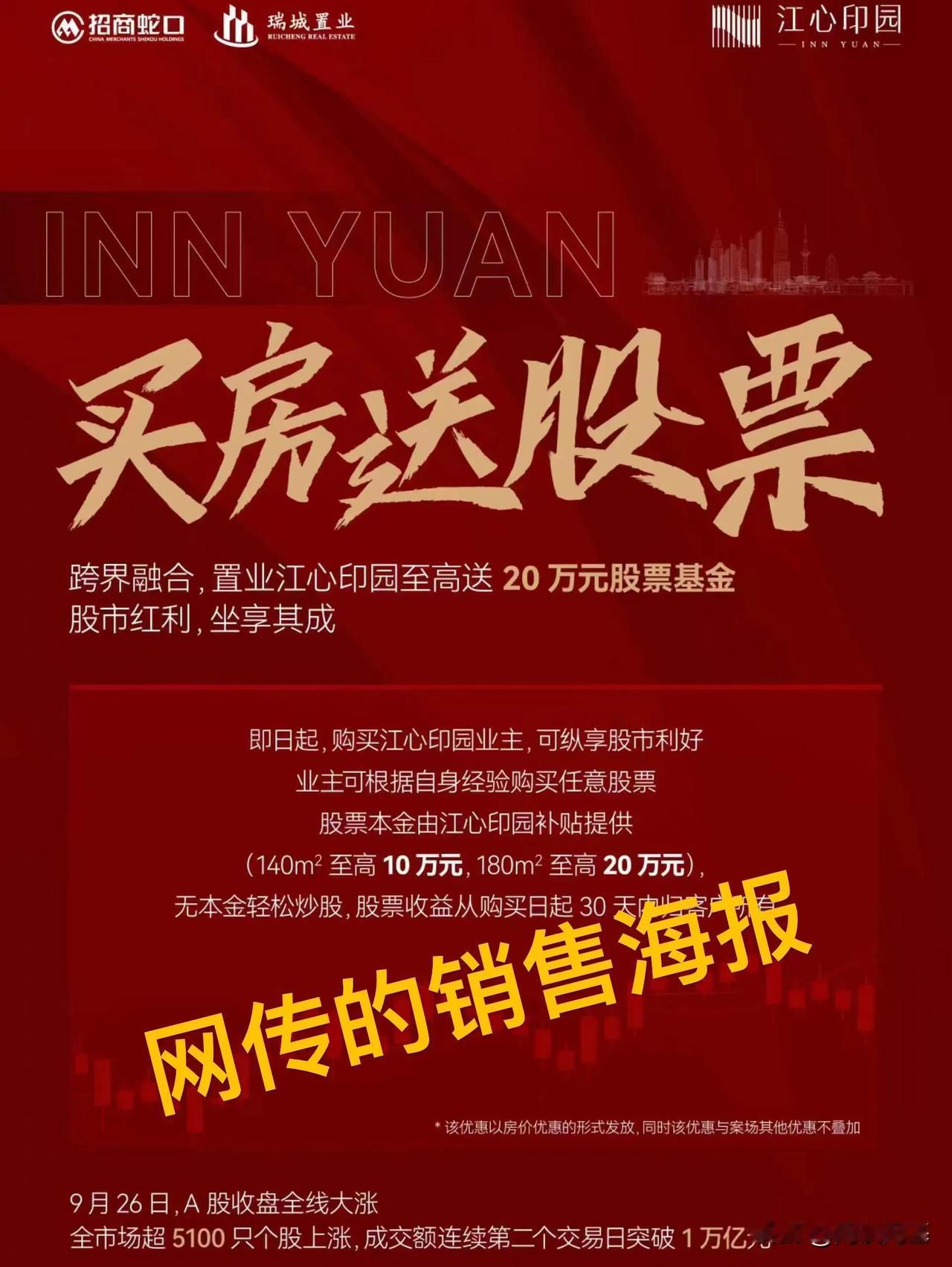 买房送股票!房企新鲜招式出炉!你见识过没 招商蛇口南京项目买房送最高20万元的股票, 这样的促销方式你见识过了没,20万的股票, 这可不是固定的资产呢,周五招商蛇口的最新收盘价为11.22元, 从最低的7.13元,已经反弹了超20%,在2019年时最高点19.20元, 最新披露的半年报显示,2024年上半年,公司实现营业收入512.73亿元,同比下降0.33%;归母净利润14.17亿元,同比下降34.17%, 第二季度实现营业总收入275.25亿元,同比下降24.45%,环比增长15.91%;归母净利润10.85亿元,同比下降42.32%,环比增长226.40%