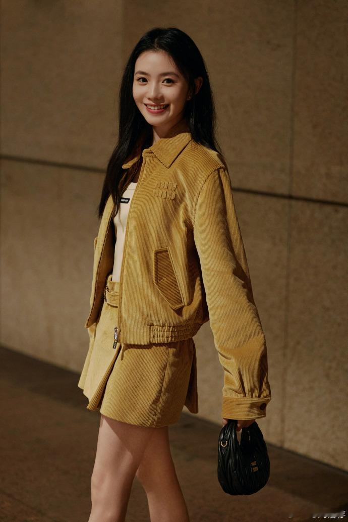 #刘浩存出发巴黎时装周# 姜黄色条绒套装下的刘浩存,散发着自信与魅力,巴黎时装周,值得期待。