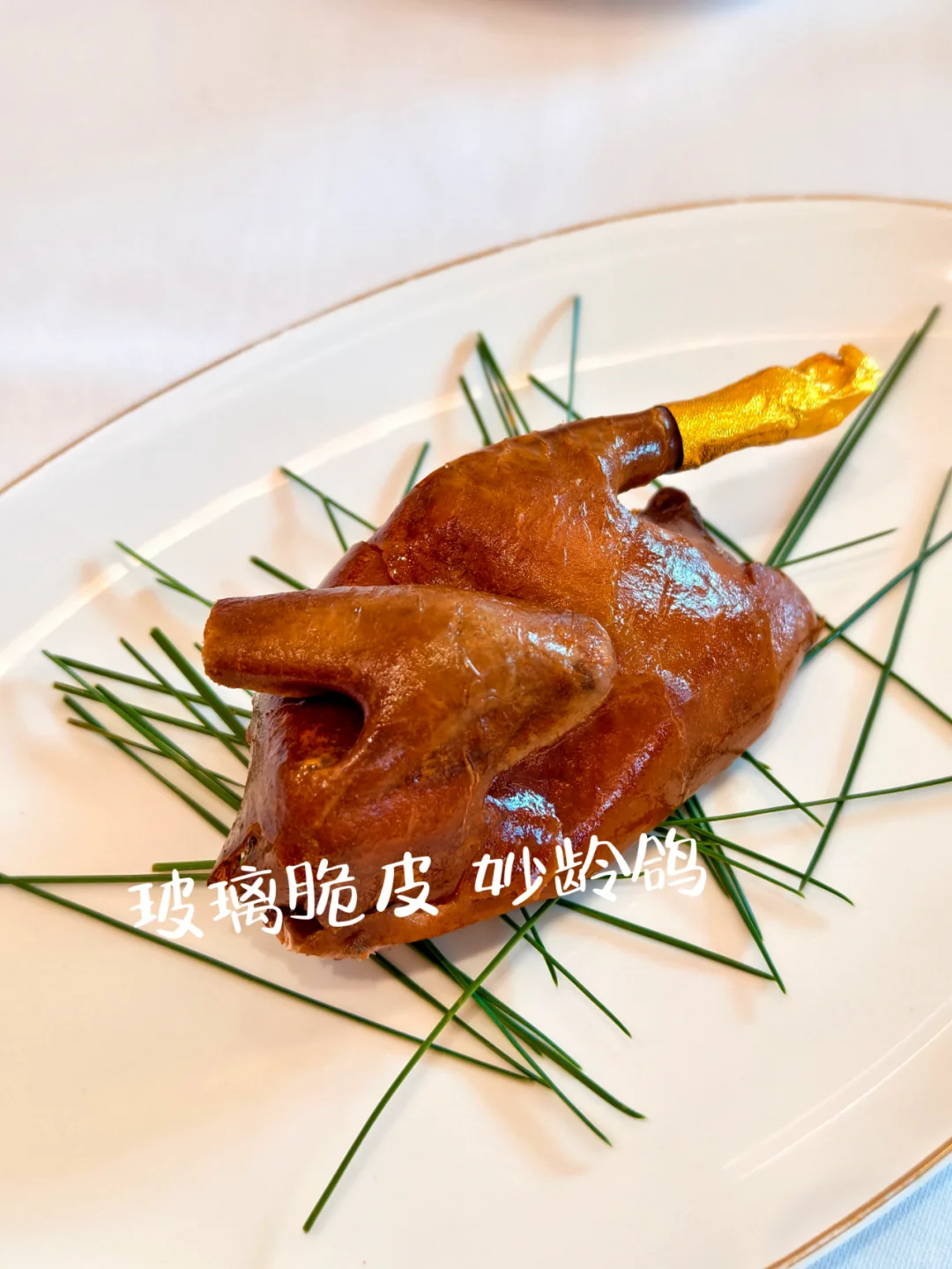 玻璃脆皮妙龄鸽:外皮酥脆如玻璃,但里面的肉,汁水不是很够。