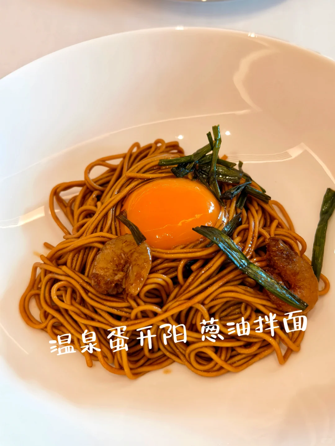 温泉蛋开阳葱油拌面:上海人都喜欢吃葱油拌面,加个温泉蛋,画龙点睛。