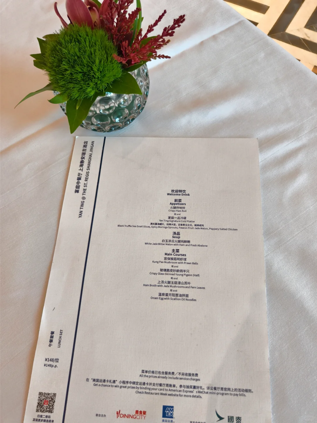 🔥 瑞吉酒店的宴庭中餐厅在装修,2024秋季餐厅周安排在了卡罗琳厅,就有了在西餐厅吃中国菜的氛围,环境没有那么豪华,但也明亮了很多。