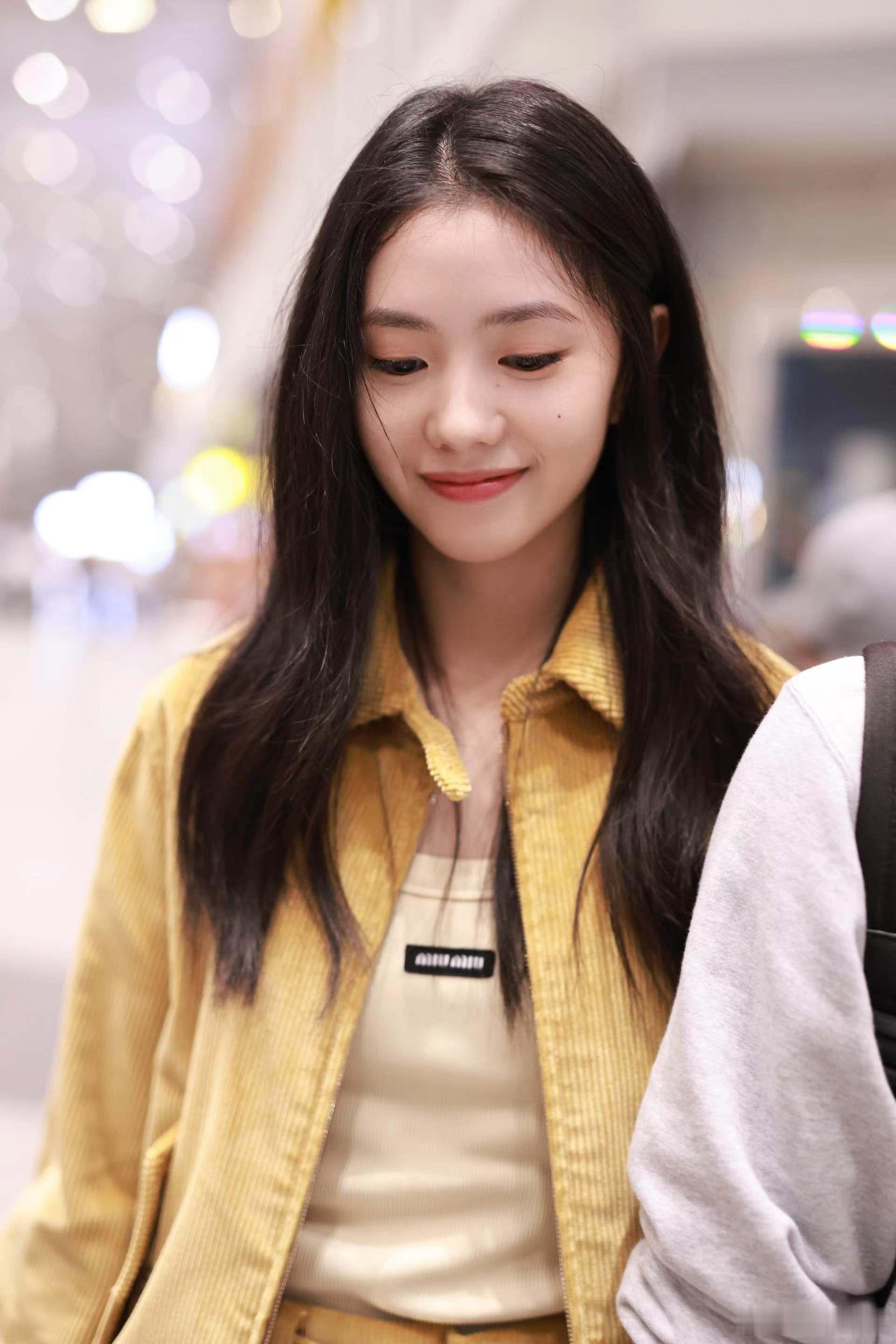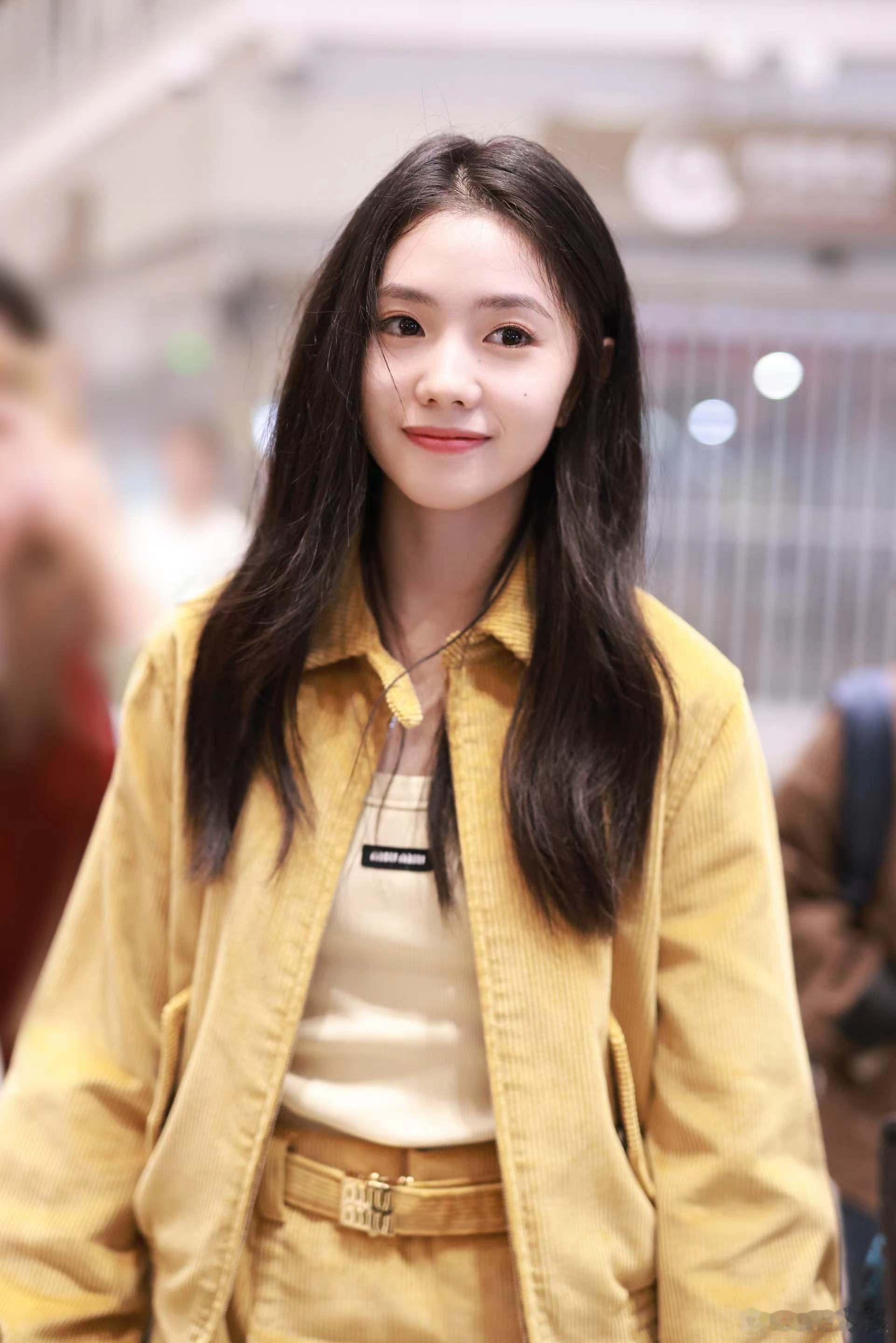 #刘浩存看MiuMiu大秀#刘浩存为参加 MiuMiu2025 春夏秀场整装待发,姜黄色短裙套装在机场呈现出满满的 Miu 值。
