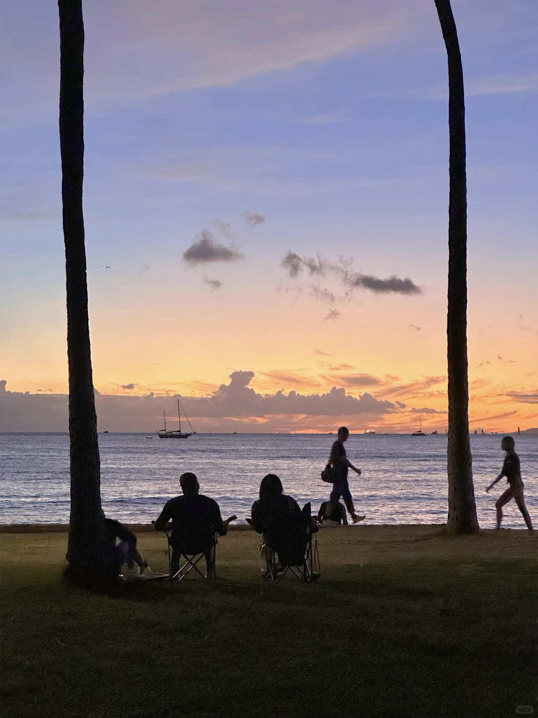 夜晚降临前的夏威夷海边