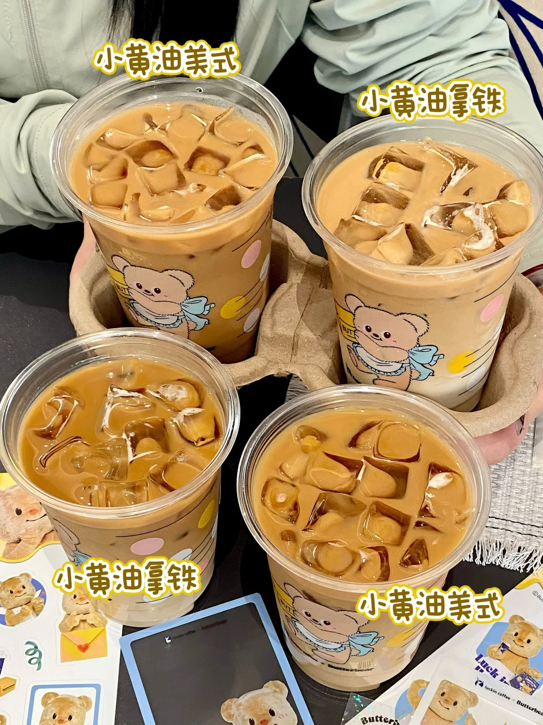 啊啊啊谁能拒绝这一杯小黄油拿铁啊!! 联名黄油小熊拿铁也太好喝了!黄奶油味巨浓!口感好丝滑!!惊艳到了!![色色R] 口感感觉比马斯卡彭还要香醇啊! 怎么做到又清爽又香醇的!真的一点也不腻! 小黄油美式也好喝!🧊加冰清爽! 热饮黄油味和咖啡味会更香浓! 减脂期的姐妹可以选这杯!不额外加糖热量低! 点双杯可以收集立体黄油小熊联名的纸袋、透卡、贴纸和杯套!可爱晕惹!!看到就心情愉悦😁