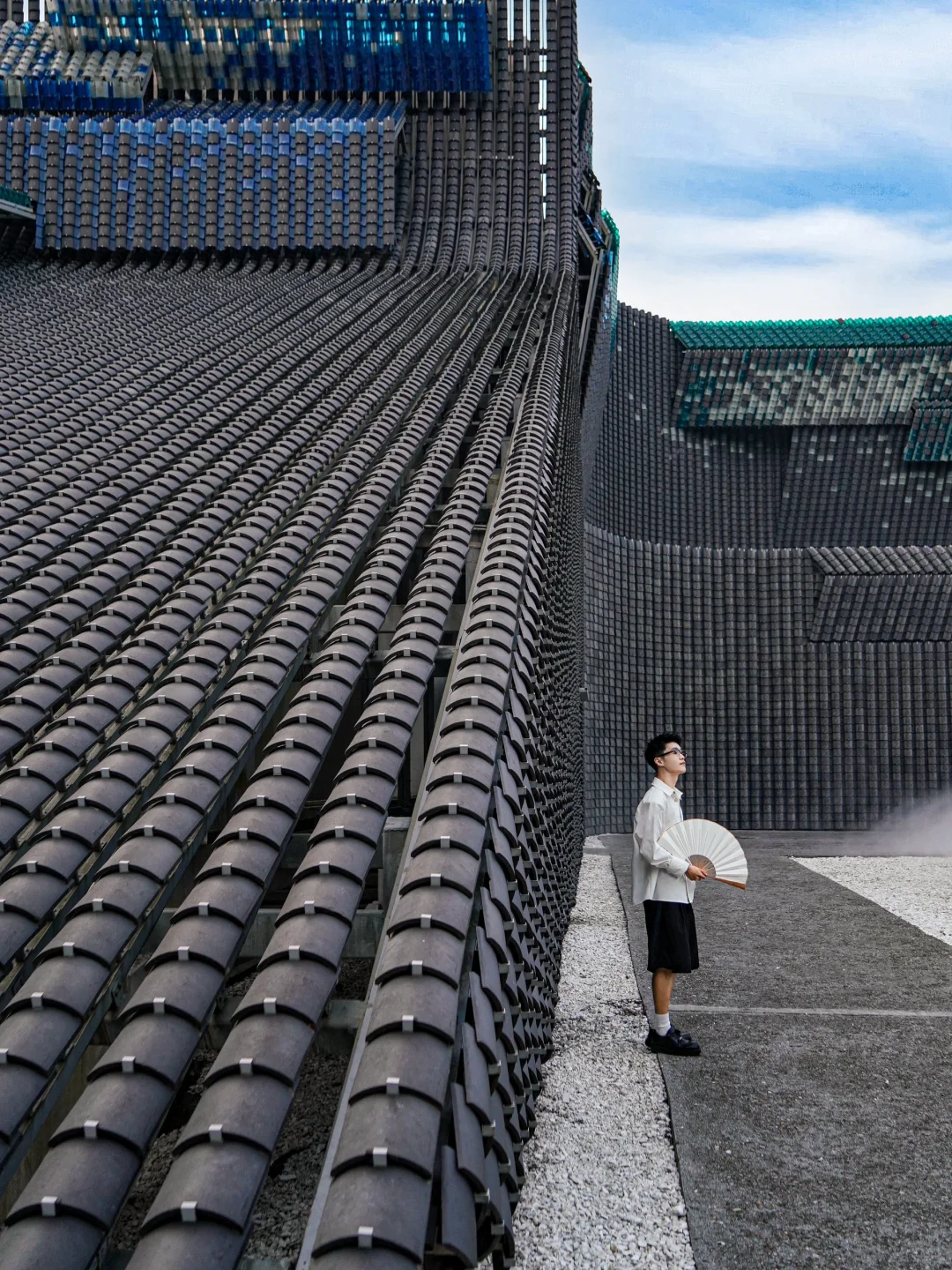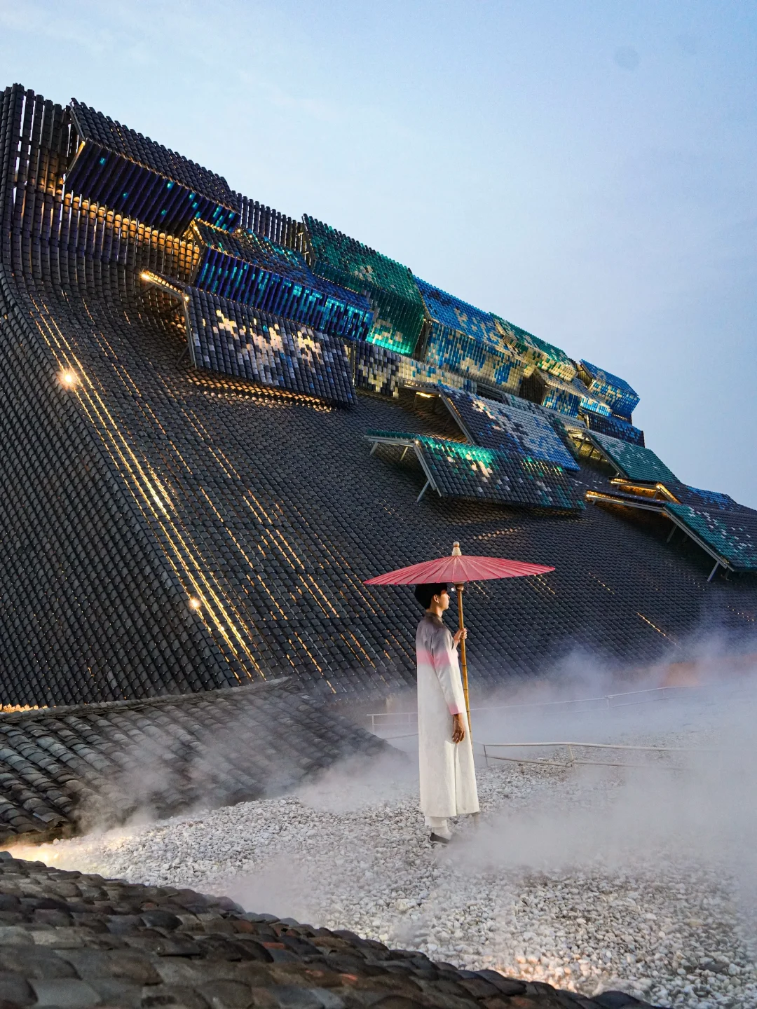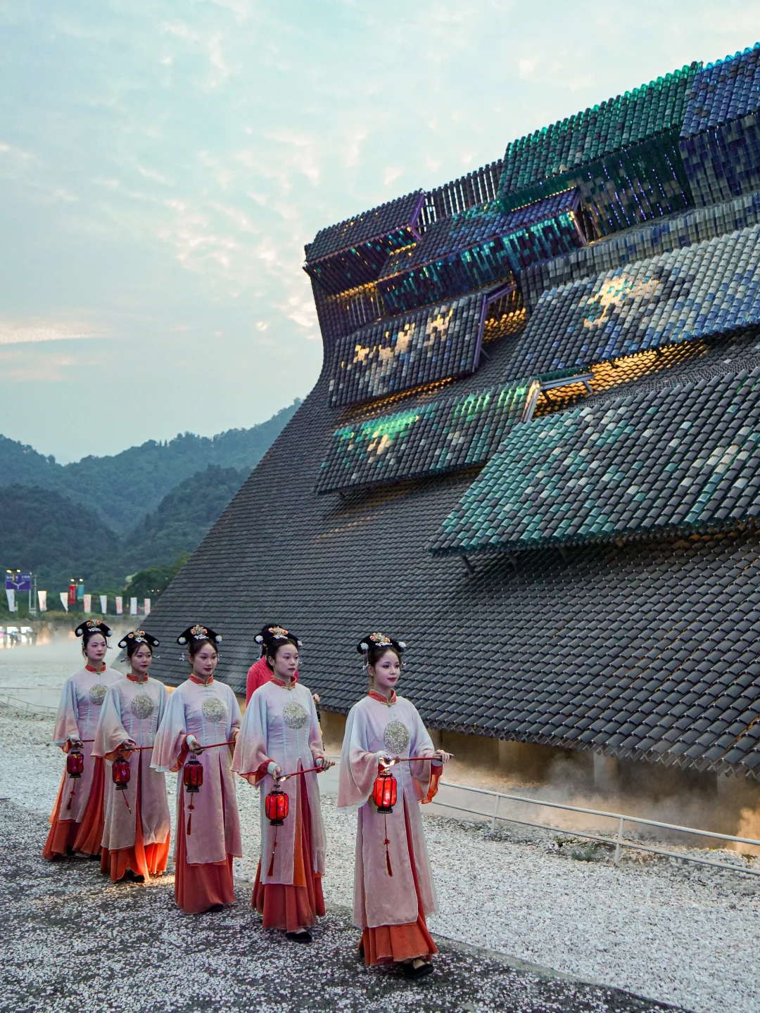 由瓦片和琉璃砖搭建的剧场,外观看起来非常震撼,走进其中雾气缭绕,就像来到了云端!来之前一定要清空好内存喔~因为真的太出片了!