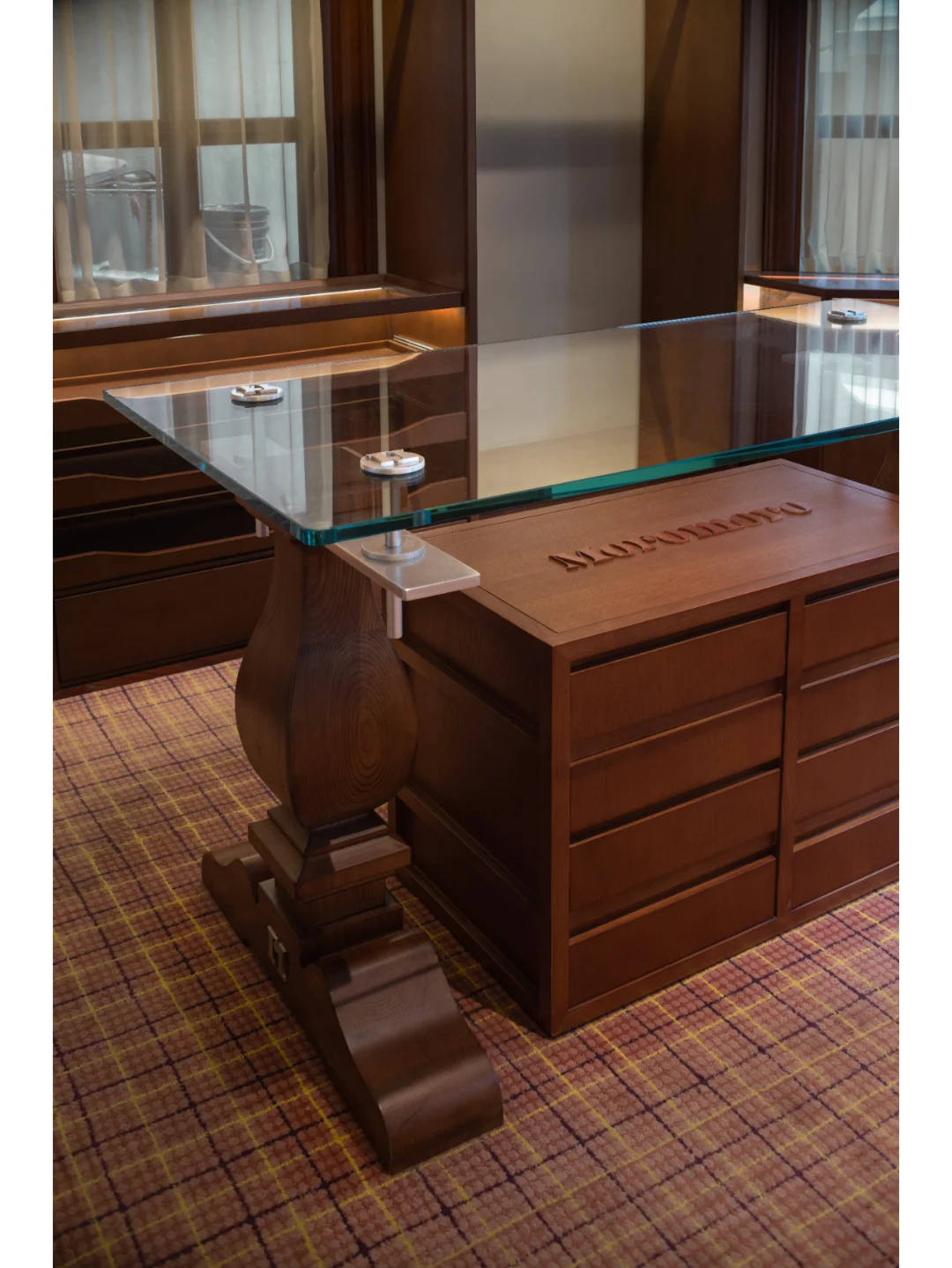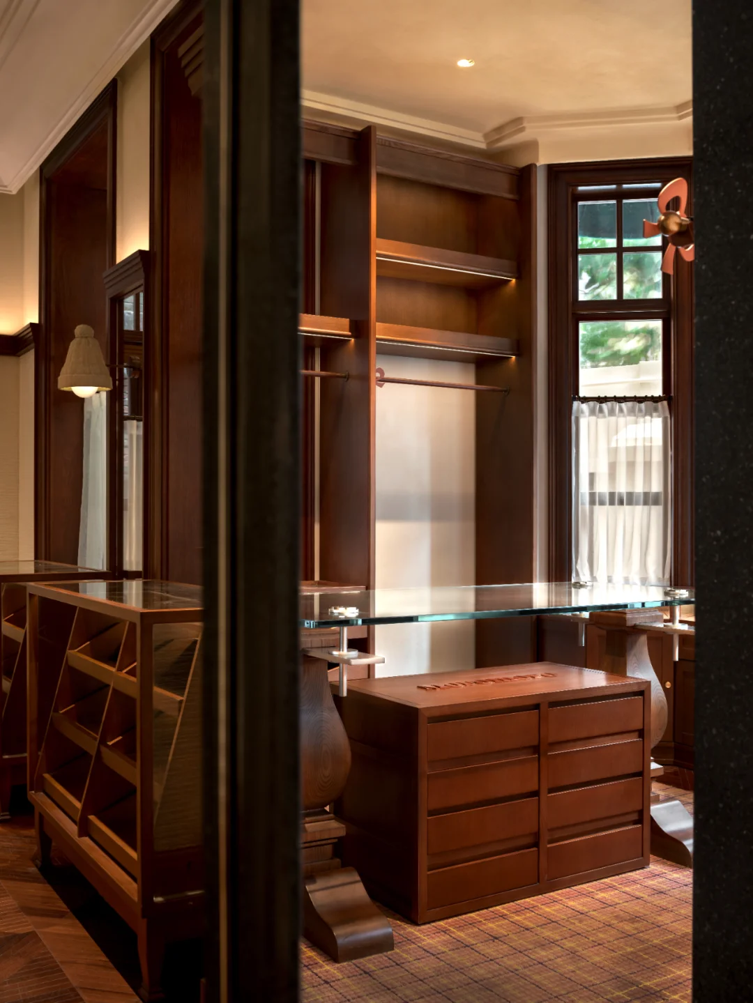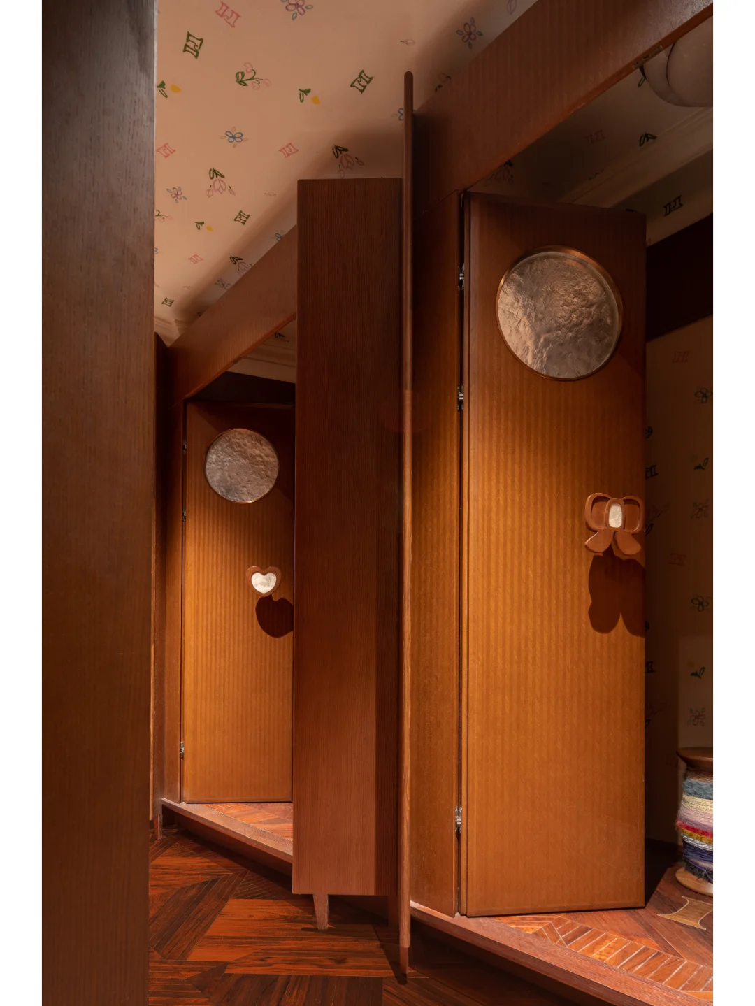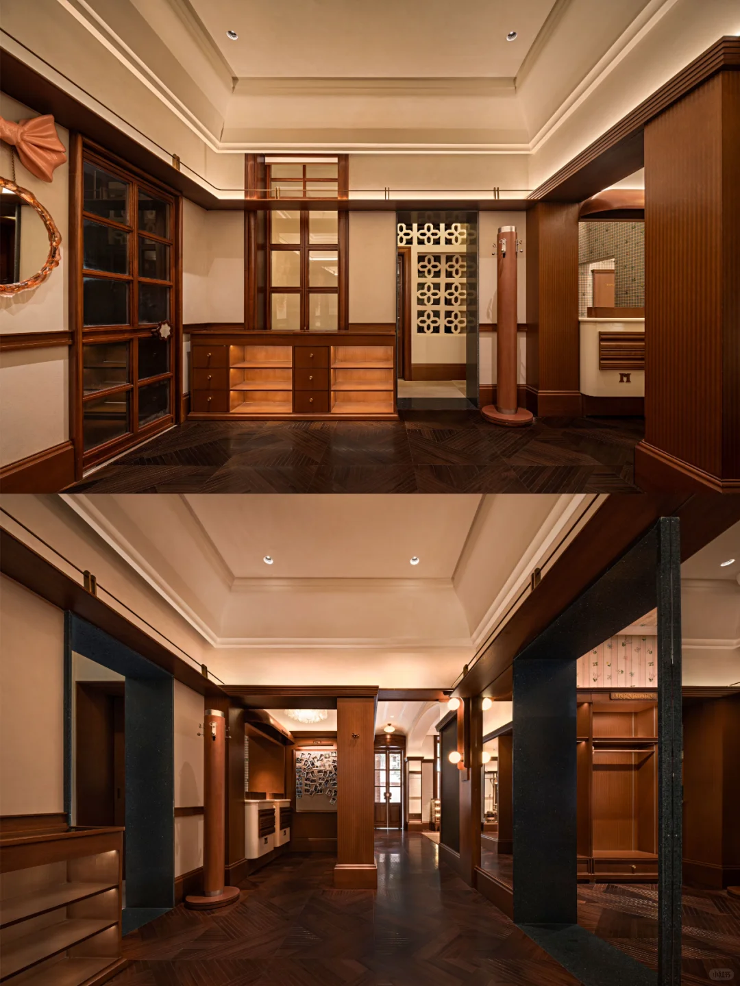 暖色调照明光线为空间营造温柔的视觉氛围,放松心情沉浸式体验时装带来的愉悦想象。材料上延续温暖胡桃木色,呼应整体空间复古美学的主基调。