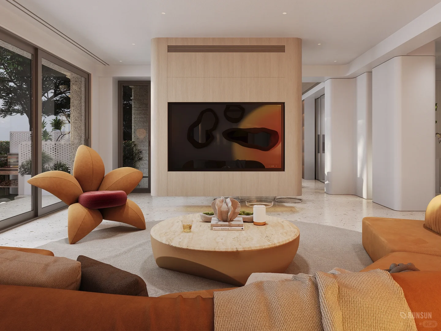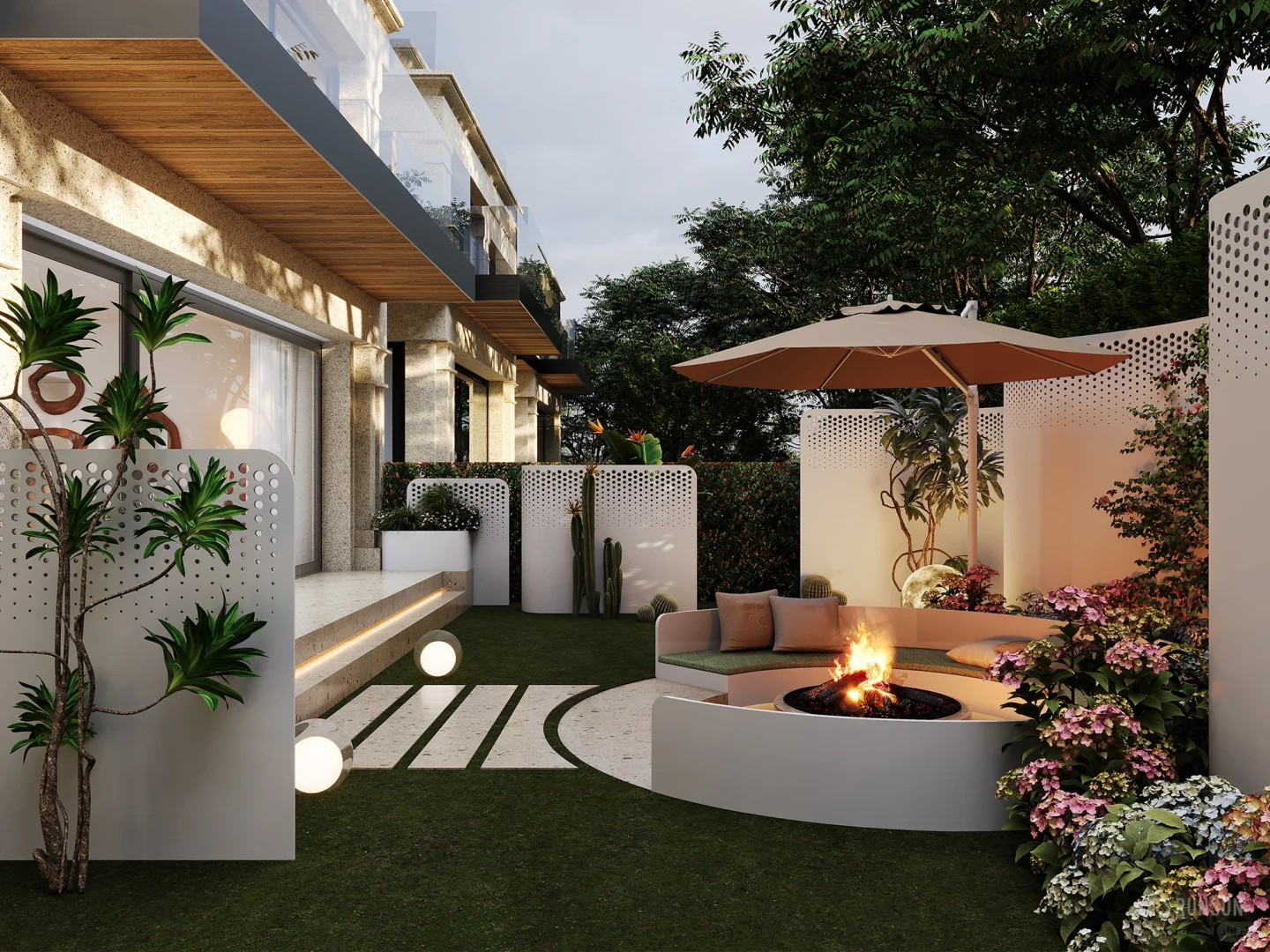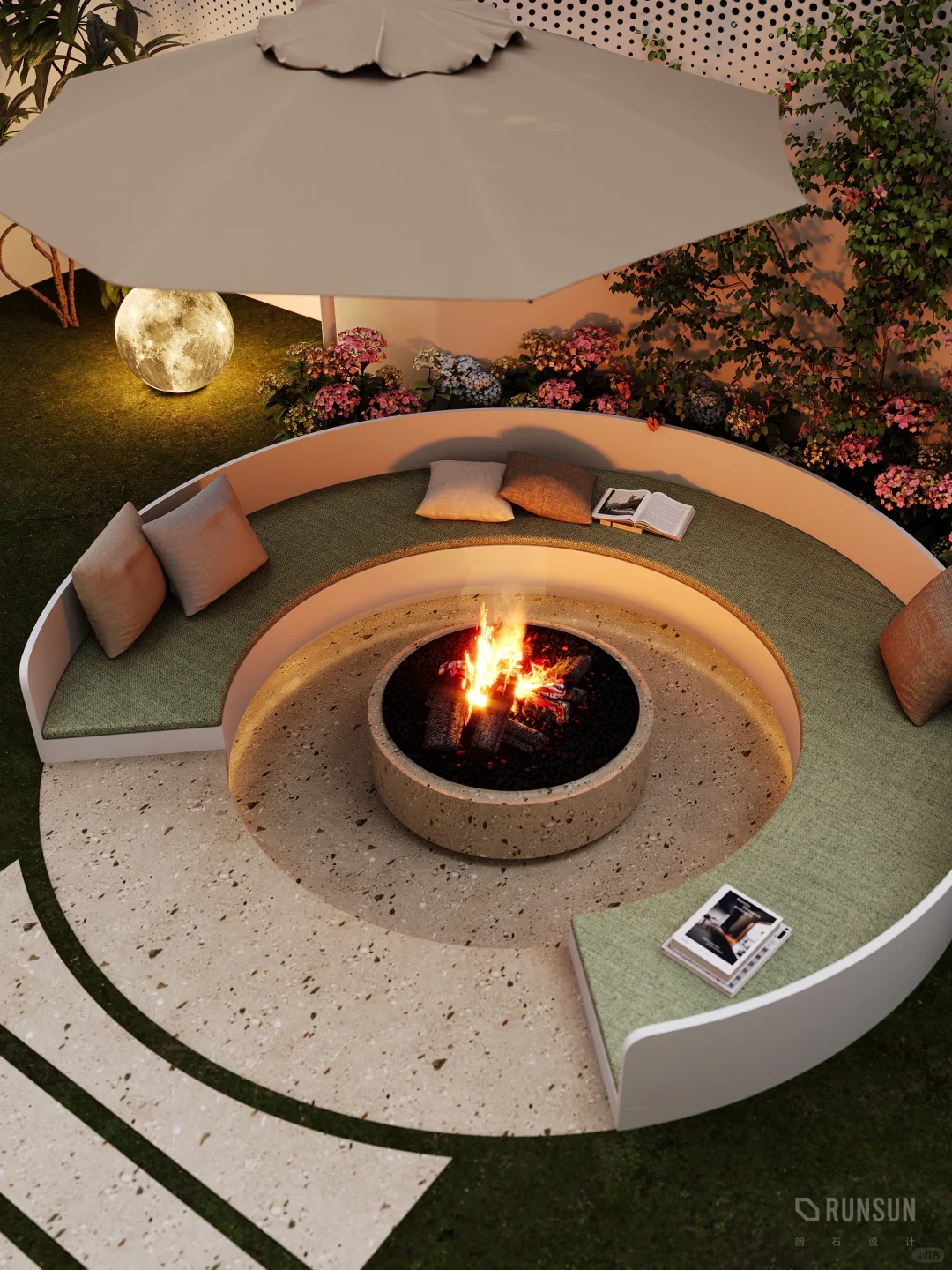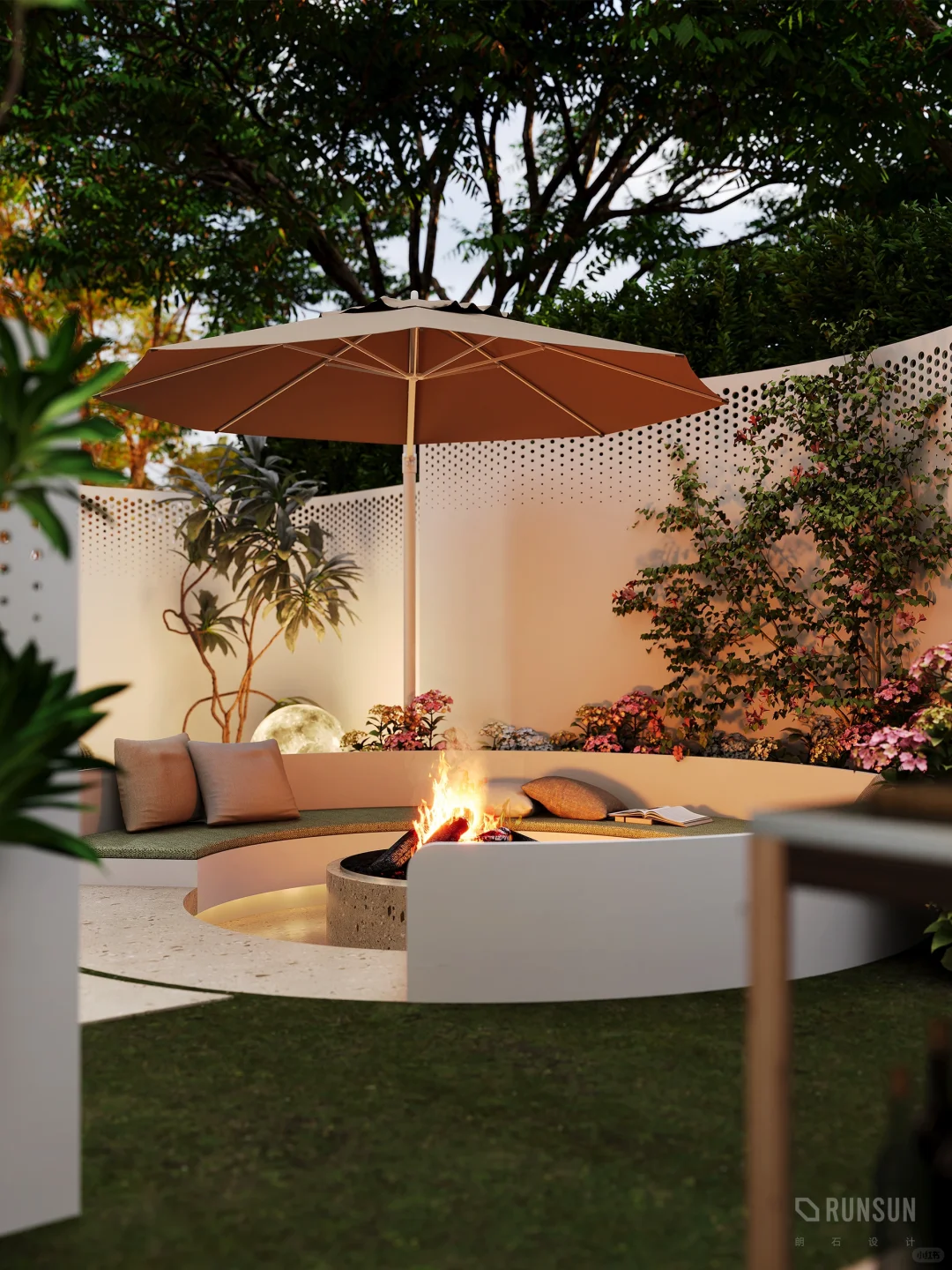 NEWCASE.温州悦府排屋别墅 普通“钢筋铁林”没有自然的喘气空间,不如选择一楼,自己打造一个花园吧! 将室内客厅与室外花园结合设计,把花园打造成户外会客厅,全弧形户外会客厅,可以容纳十几人聚餐娱乐 室内客厅电视做悬空背景,不给空间一点“落地”机会!室外的新鲜空气也要在客厅流淌~直接做全景移门,全方面展示花园景色。室内私密空间,室外休闲空间,能贯通能私密,你值得拥有[赞R]