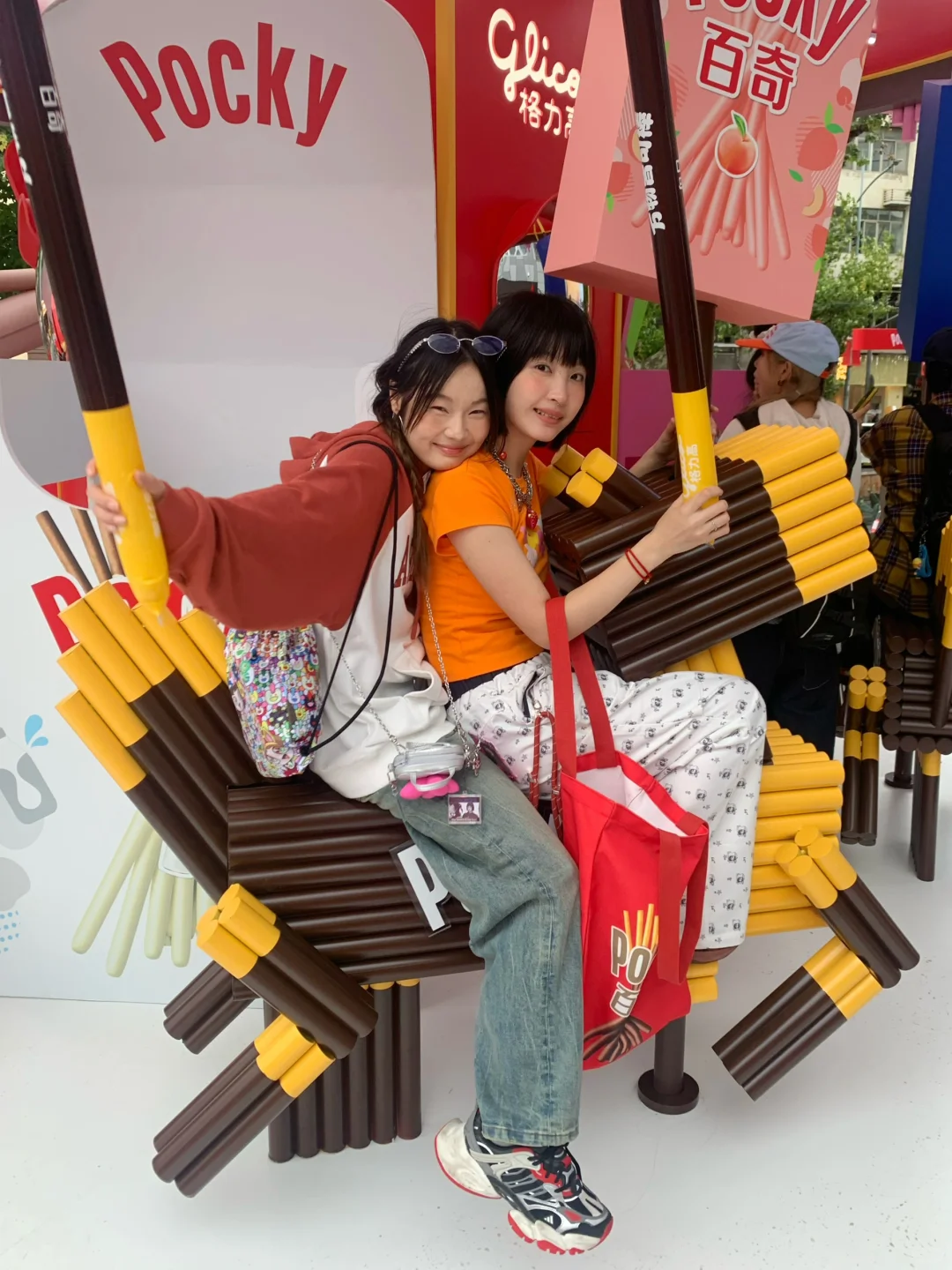 今天和朋友citywalk,一起来到百奇乐园疯狂拍照啦!和朋友拍出了好多时尚大片太有意思了 !最喜欢的是百奇棒旋转木马还有百奇跷跷棒,实在是太可爱啦!感觉是在我梦里出现过的场景,和朋友玩的好开心的一天哇,分享百奇分享快乐~🥳 还有两个巨大的Pocky充气人 !超酷 !简直“万物皆可棒”👍!