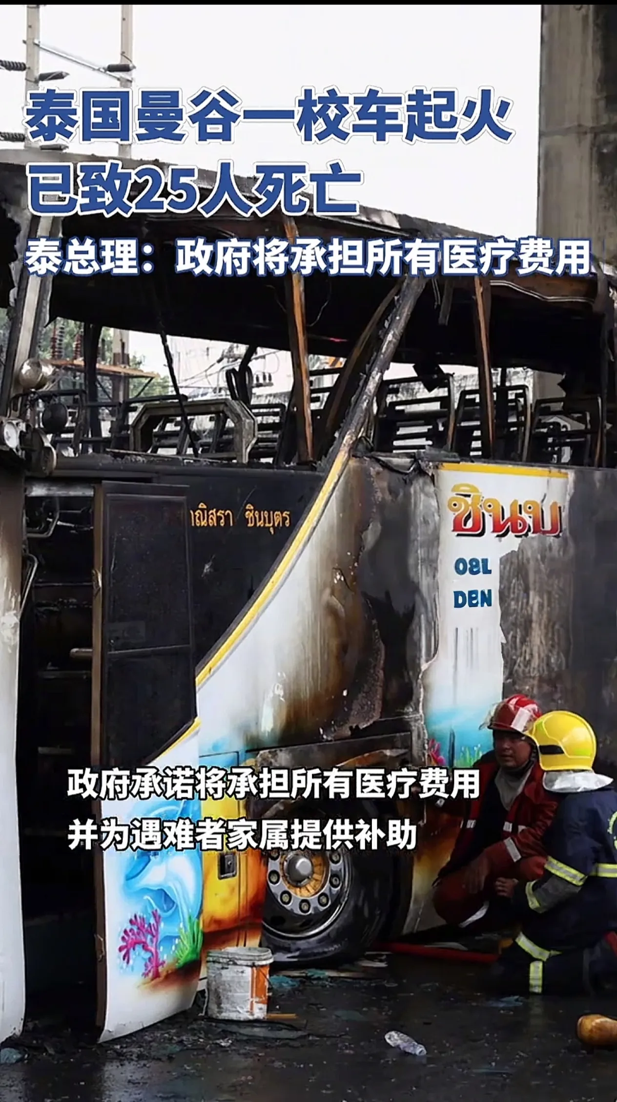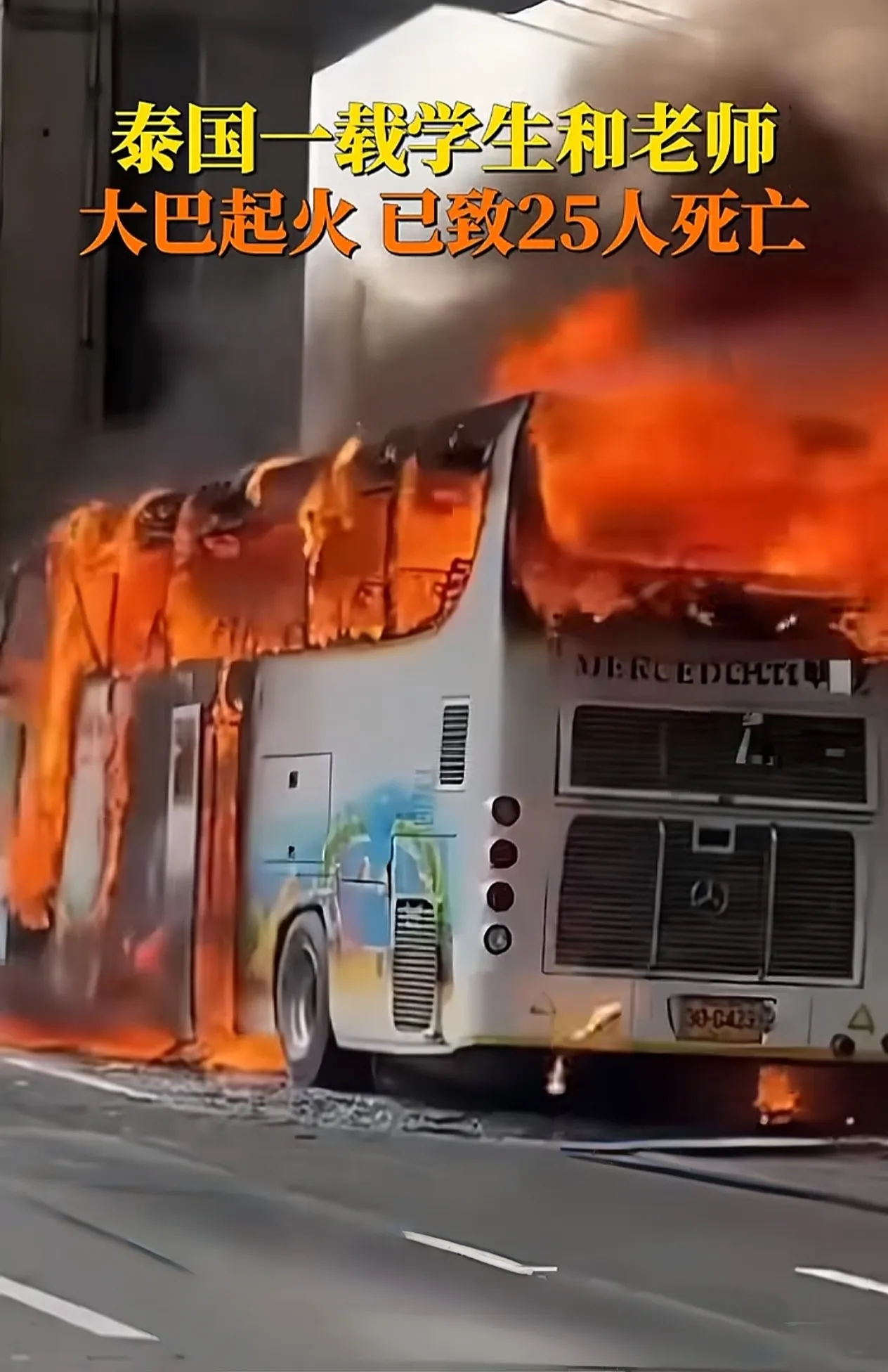 已致25人死亡!据央视新闻报道,泰国当地时间10月1日12时许,一辆拉着有40多名学生与老师的大巴车,从始发地行驶至泰国首都,曼谷北郊一处地点时突然发生火灾。