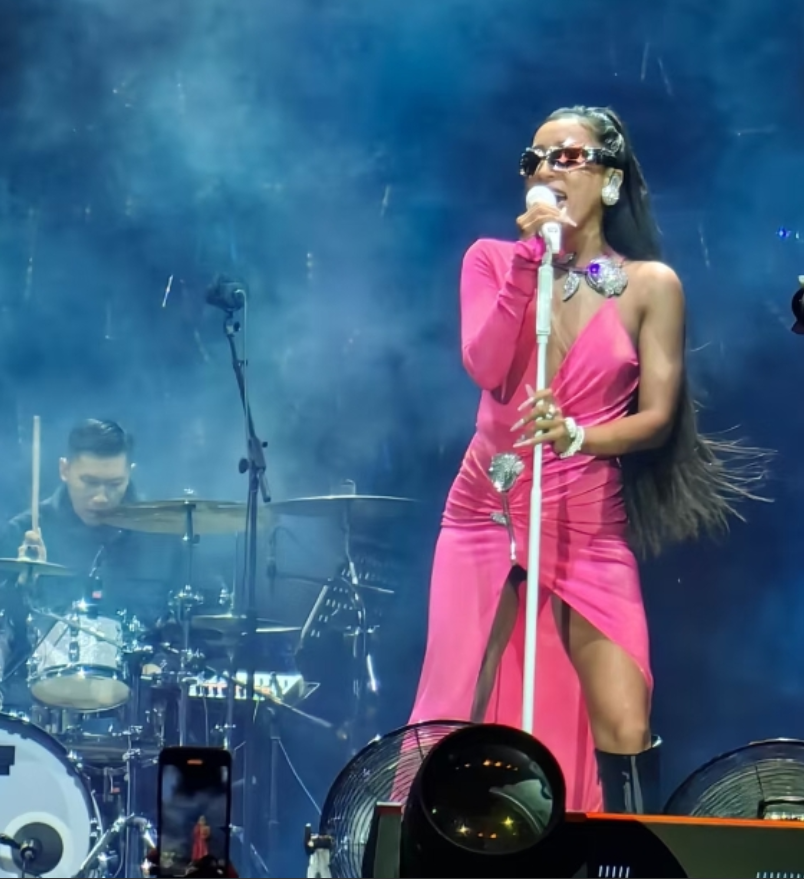 吉克隽逸的皮肤故意晒得很黑,搭配上“死亡芭比粉”,整个人哪怕放在人群里,也是极为耀眼的存在。