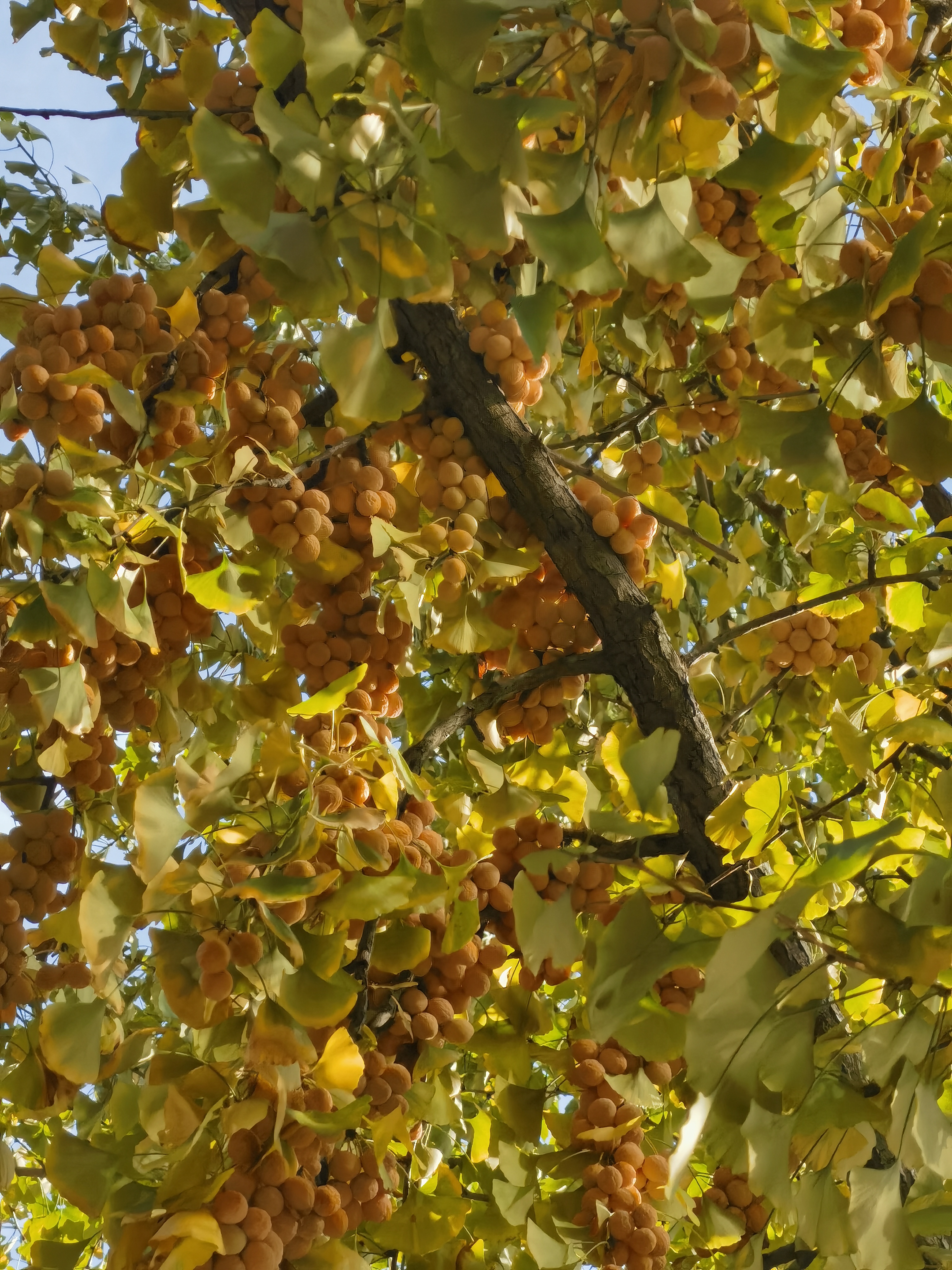 小区有几颗母银杏树,一到季节就满树白果,看上去硕果累累,一旦掉到地上,臭气熏天,不知道这种白果能做什么,据说有很大的药用价值,就是不知道为啥这么臭?
