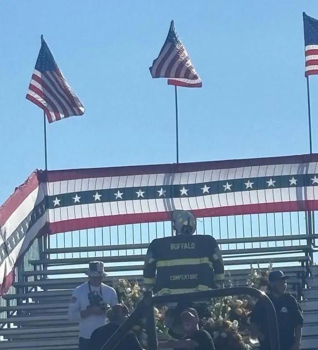 特朗普竞选团队的特殊安排:特朗普重返遭遇暗杀的宾夕法尼亚州巴特勒,在集会的看台上放置了科里·康佩拉托雷的消防员制服,也摆放了画家Scott Lobaido创作的肖像画。事发时,科里扑向家人,他为保护妻子和女儿不幸遇难。科里也是那场暗杀事件唯一的遇难者。科里的家人今天参加了特朗普在巴特勒的竞选集会,继续对特朗普表示支持。