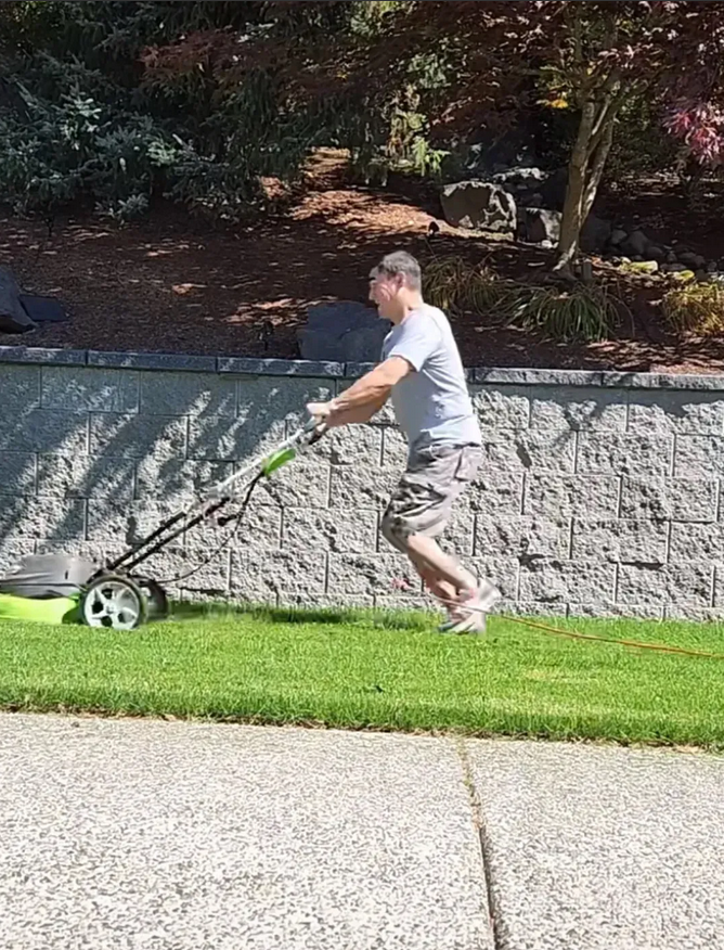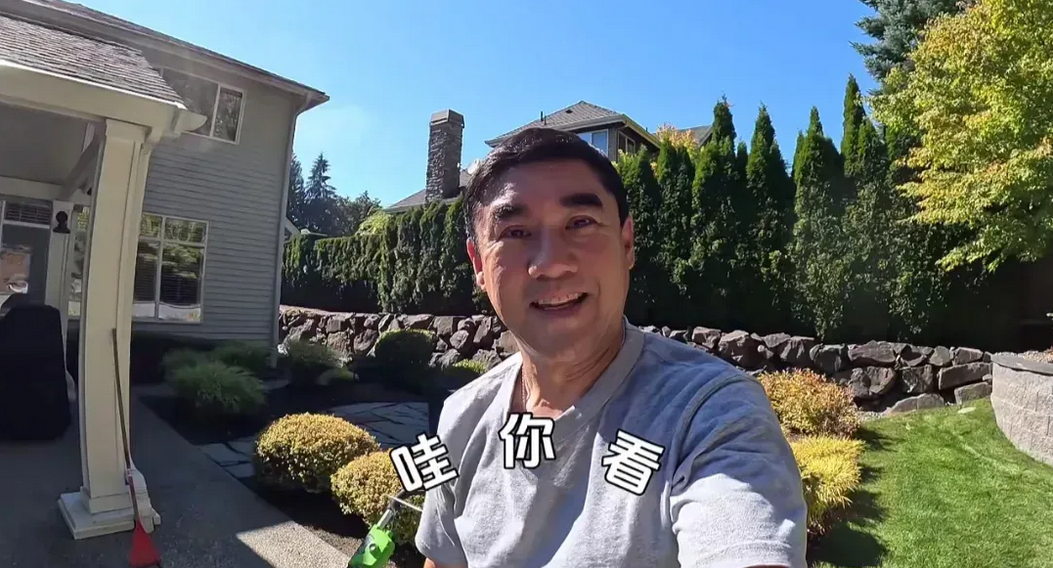 他居住在一套带花园的别墅,装修风格颇有格调。视频中,吴大维亲自使用剪草机清理花园杂草,忙得不可开交,甚至出了一身汗。尽管辛苦,但看到修剪整齐的草坪,他露出了满意的笑容。