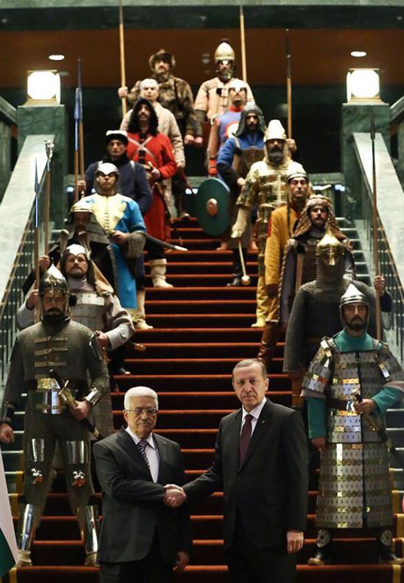作为新一任的总统,埃尔多安见证了奥斯曼传统的复兴,他在新总统府使用了奥斯曼风格的仪式来迎接巴勒斯坦总统马哈茂德·阿巴斯,而卫兵之身著皆代表历史上 16 个大突厥帝国之创开国君主的服装。