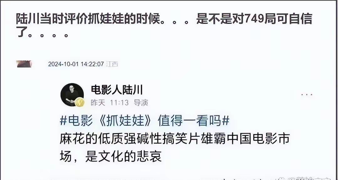 749局真没这么差的,网民是带着一些情绪的,比如,陆川对抓娃娃的差评,以及九层妖塔的内涵。