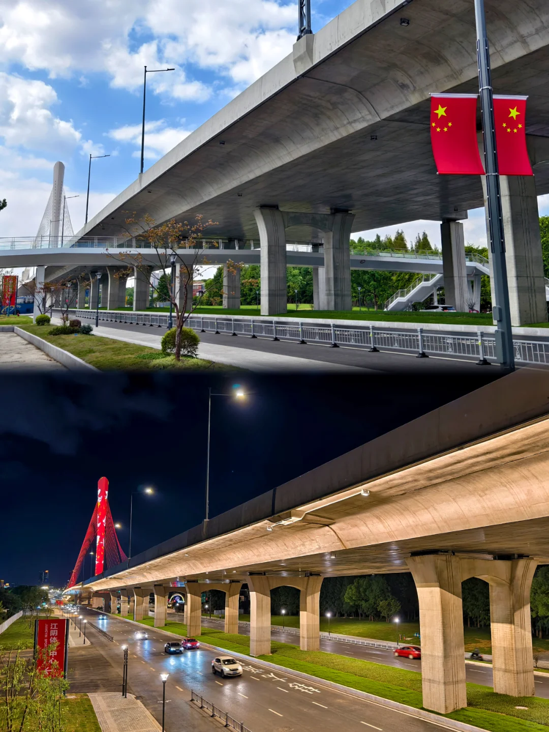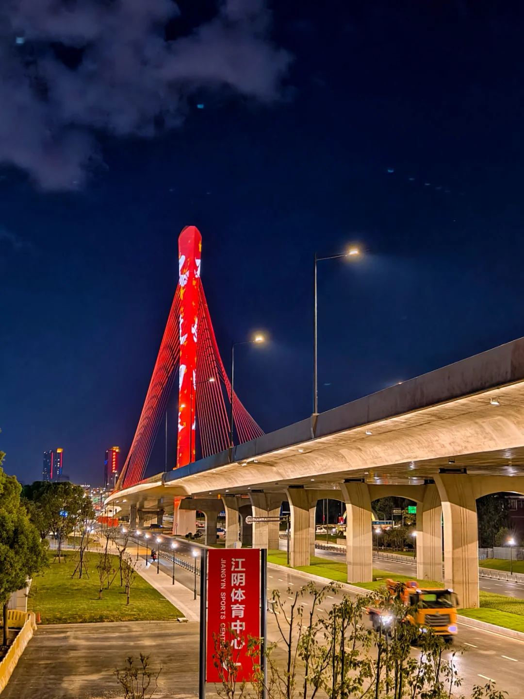 🔥2024年10月1日,江阴滨江快速路城区段开始试运行,途中会经过黄山路斜拉桥,而斜拉桥的主塔,总高88米,就是江阴小蛮腰,造型芙蓉花开,寓意蒸蒸日上。 🔥国庆期间,小蛮腰也亮灯了,欢度国庆,很是喜庆。 🔥边上的桂花树也开花了,暗香袭人。