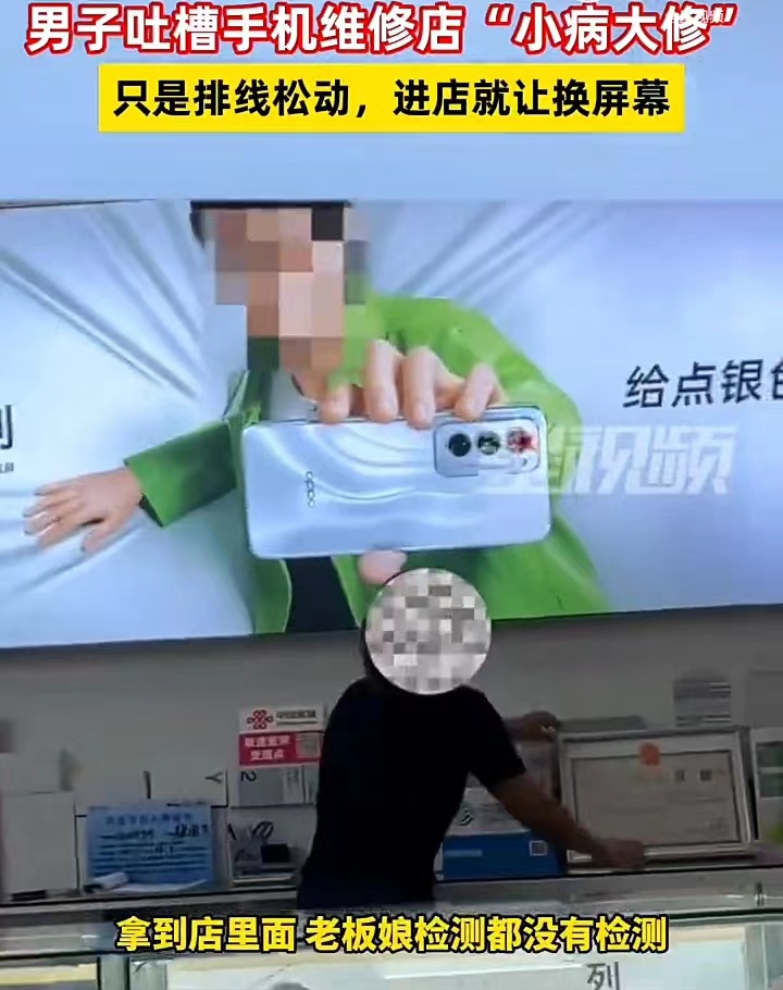 近日,上海一名男子发视频称,之前弟弟在一家手机维修店修手机被坑了,于是自己特意去试一下,明明手机只是排线松动,但老板娘根本不检测,就直接让自己换屏幕,最后换的还是非原装的屏幕,且价格不菲,自己想要回原装屏幕,但老板娘却不给。