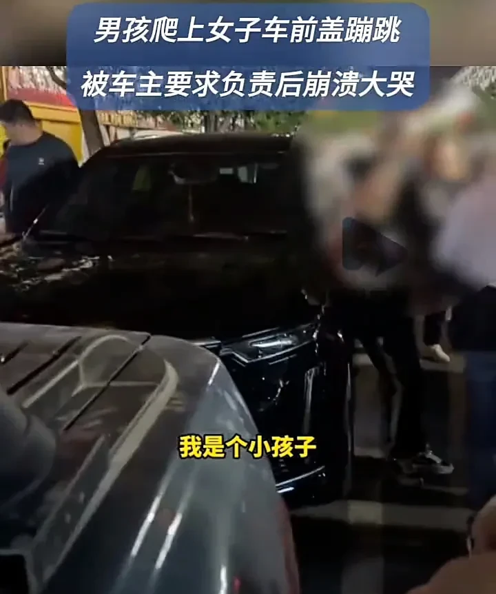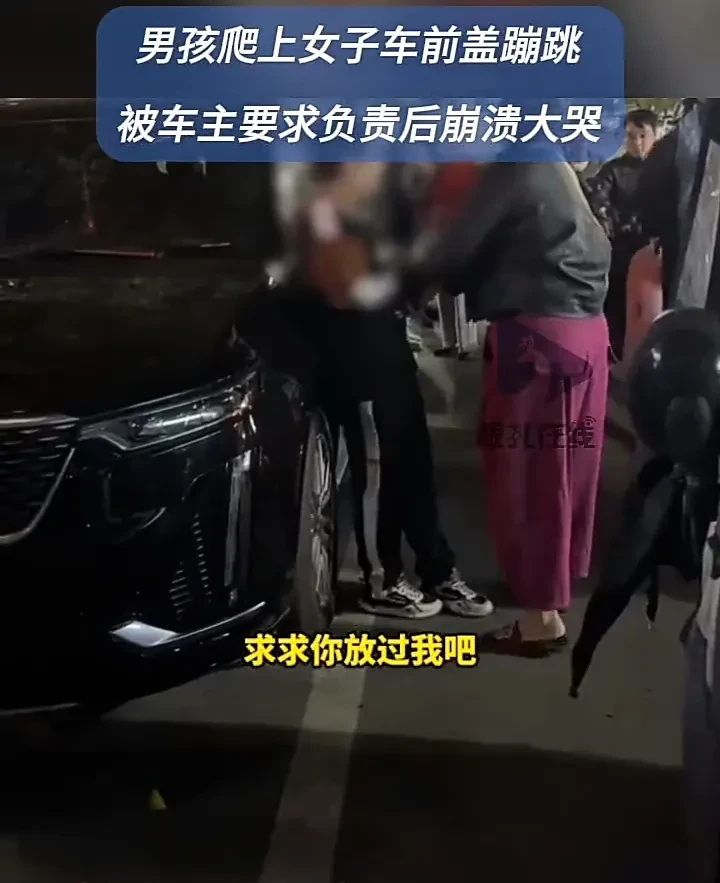 10月5日,河南洛阳一个男孩趁车主不在,爬到车前盖上蹦蹦跳跳,谁料刚好被回来的车主抓住,要求他找家长出来负责,男孩因此大哭:“对不起,求求你放过我吧,我还在上学啊,还是个孩子!”