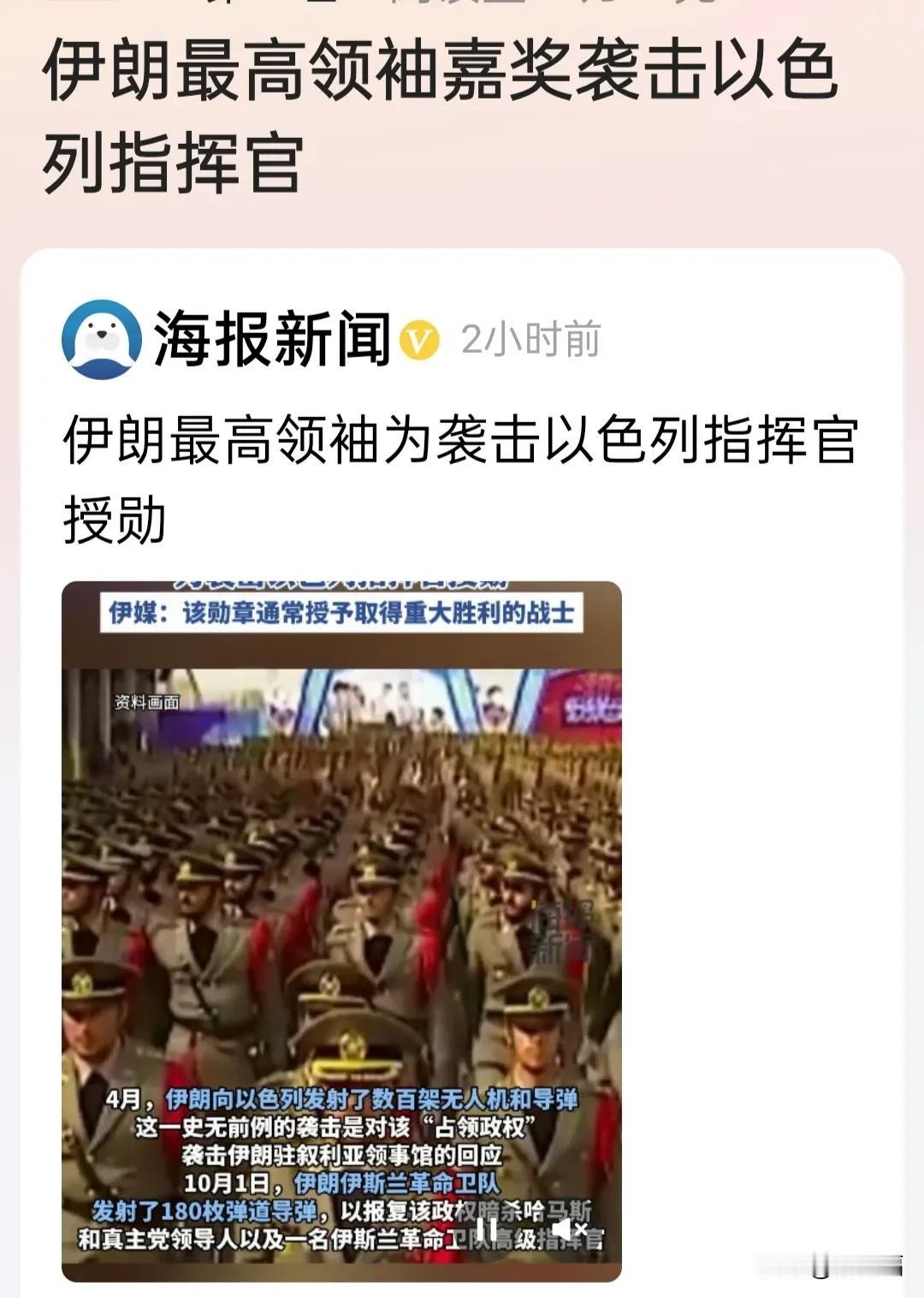 海报新闻:最高领袖为指挥官授勋。 伊朗最高精神领袖哈梅内伊战争前全民动员声势浩大,史无前例,印象深刻,影响深远,广泛发动群众团结一致抵抗美国霸权主义及以色列走狗野蛮行径。