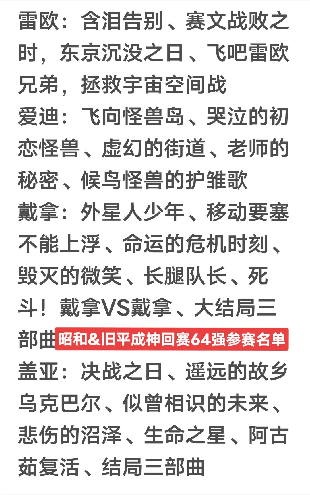 昭和&旧平成神回赛参赛名单奥特曼系列旧平成奥特曼