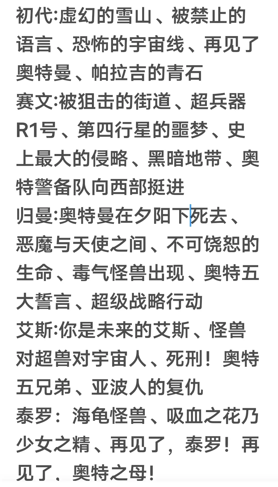 昭和&旧平成神回赛参赛名单特摄剧奥特曼系列昭和系奥特曼旧平成奥特曼