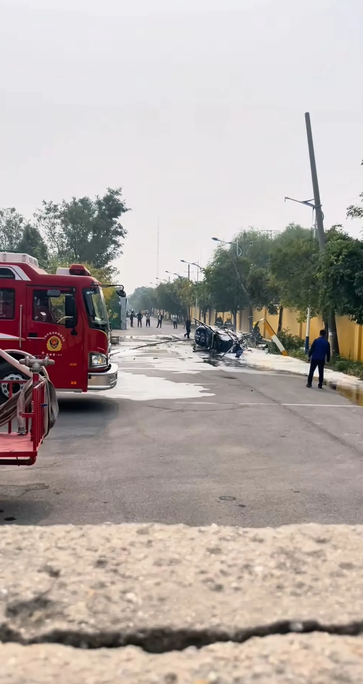 视频显示一架黑色的直升飞机,坠落在地上,飞机上还写有好几个白色的大字,具体什么字无法看清楚,机身还不停的往外冒出黑烟, 有消防员赶到现场正在紧急进行处置。