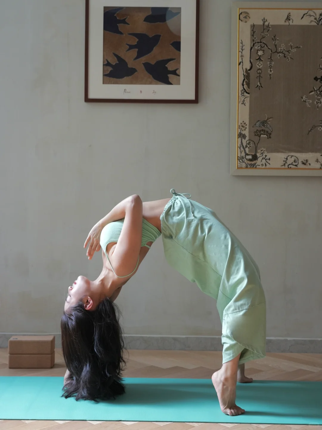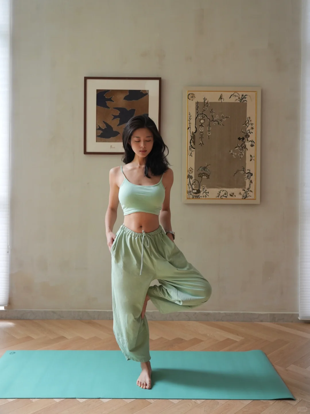 山葵青衣灵动又轻盈的着色,好似一块璞玉,清雅幽静,为习练增添治愈之力。