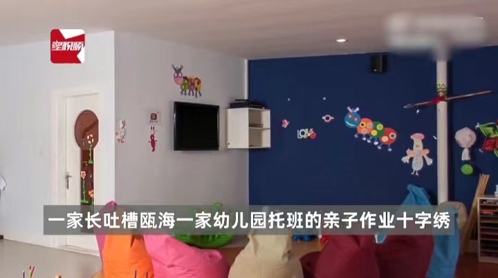 近日,浙江温州一名家长发视频称,自己3岁的孩子刚上幼儿园,老师就布置了十字绣的亲子作业,不仅发了作业材料,还在微信群里通知,让孩子和家长一起完成十字绣,并如期带回幼儿园。对此该家长表示,“老师到底知不知道这么大的孩子动手能力有多强?”