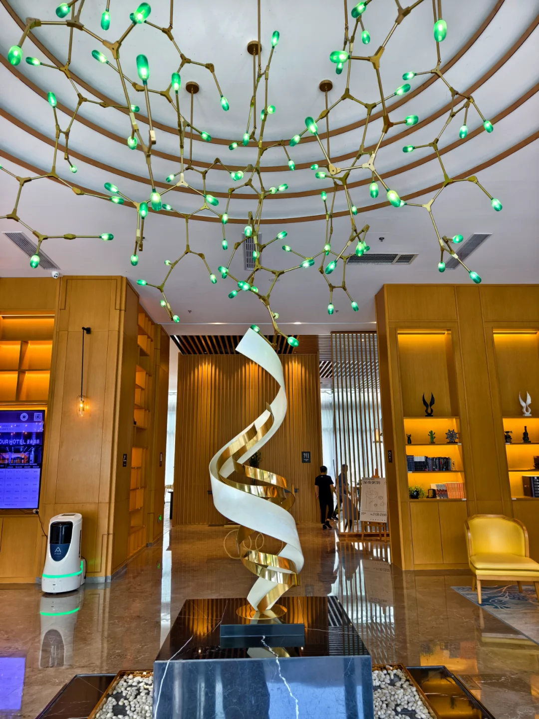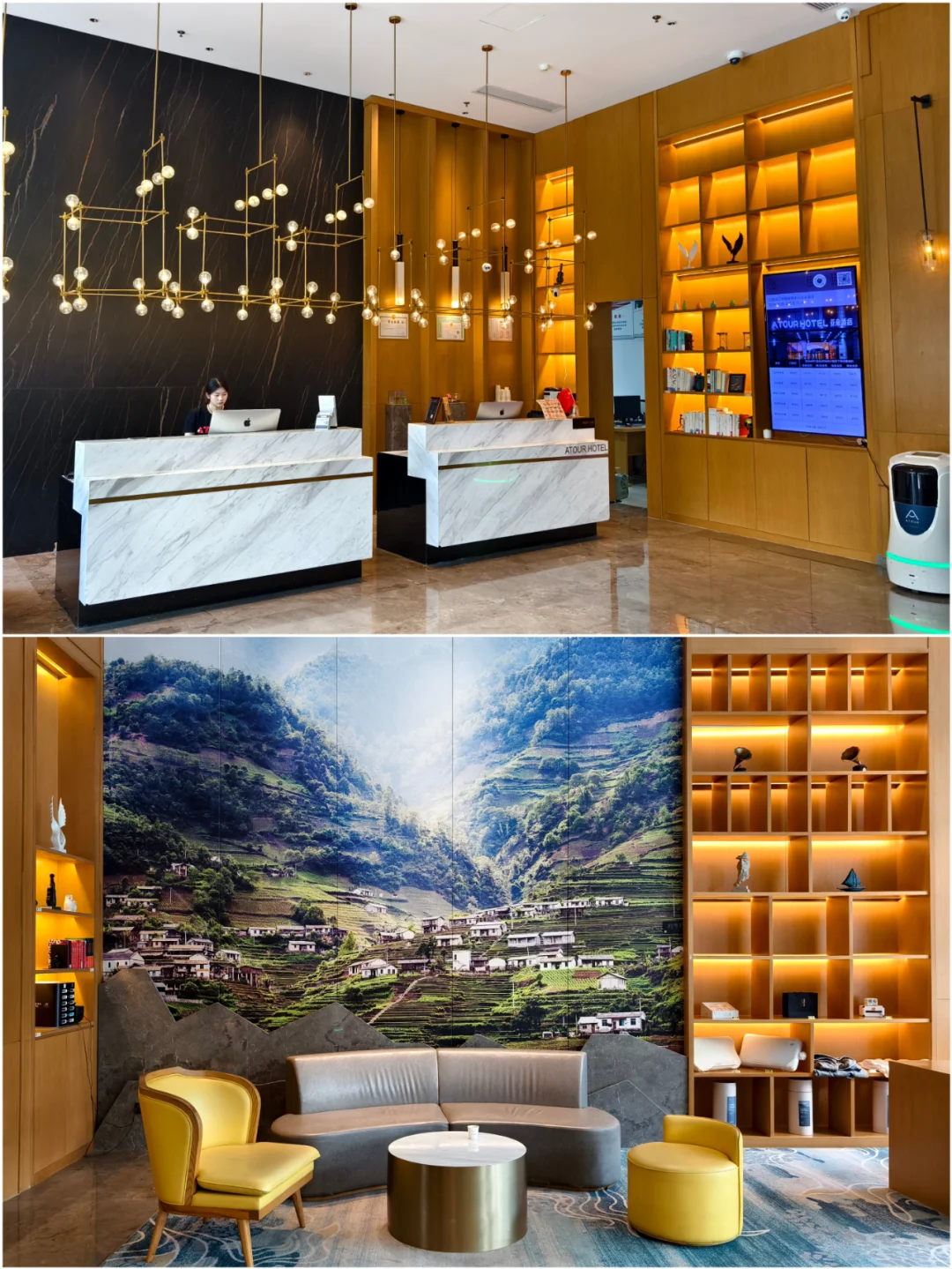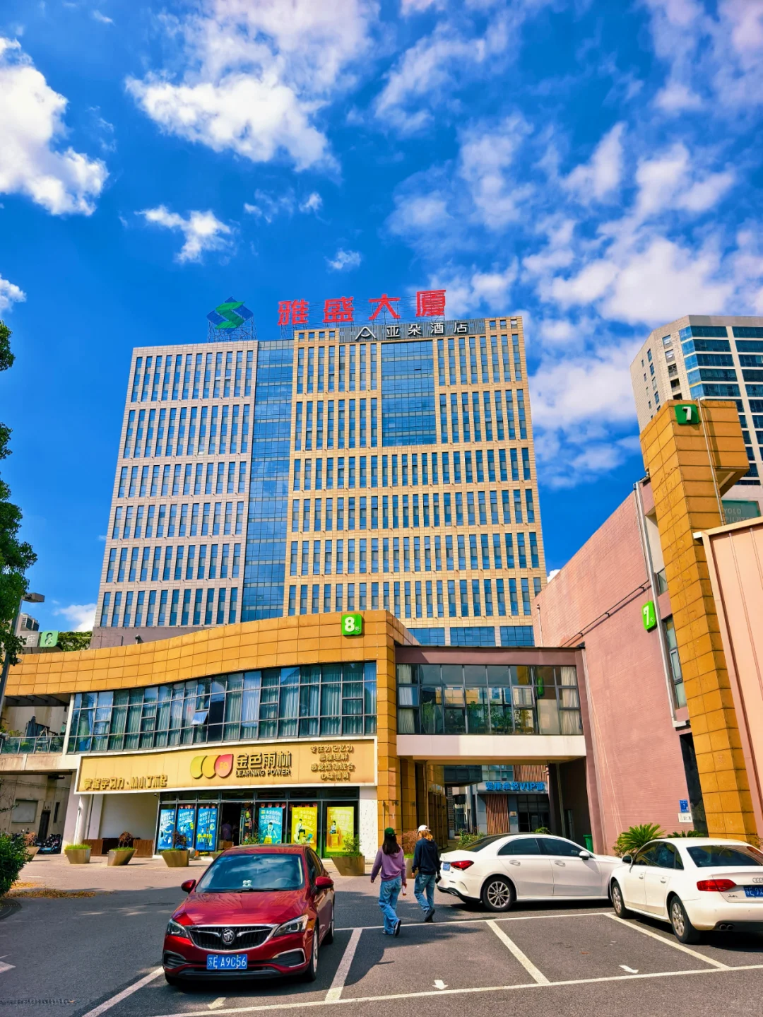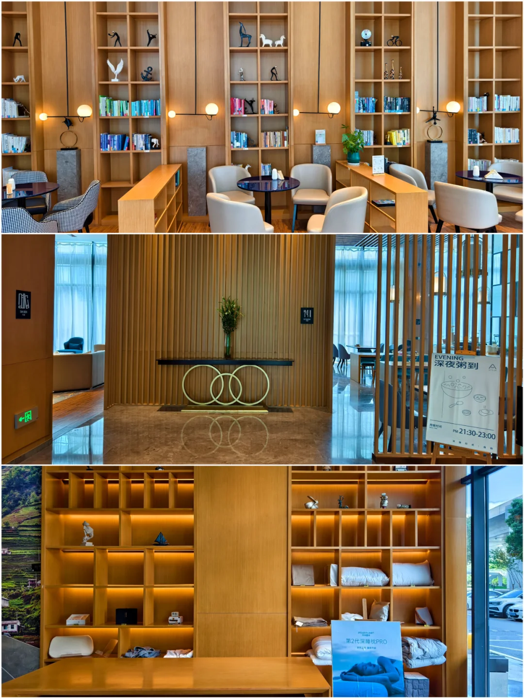 江阴有两家亚朵酒店,一家位于滨江中路体育中心,一家位于忠义街八佰伴。这次入住体育中心亚朵酒店,也是第一次打卡亚朵酒店,门口看到一排婚车。 大堂在酒店1楼,一楼还有阅览共享空间(竹居)和餐厅(相招)(P1~P5)。