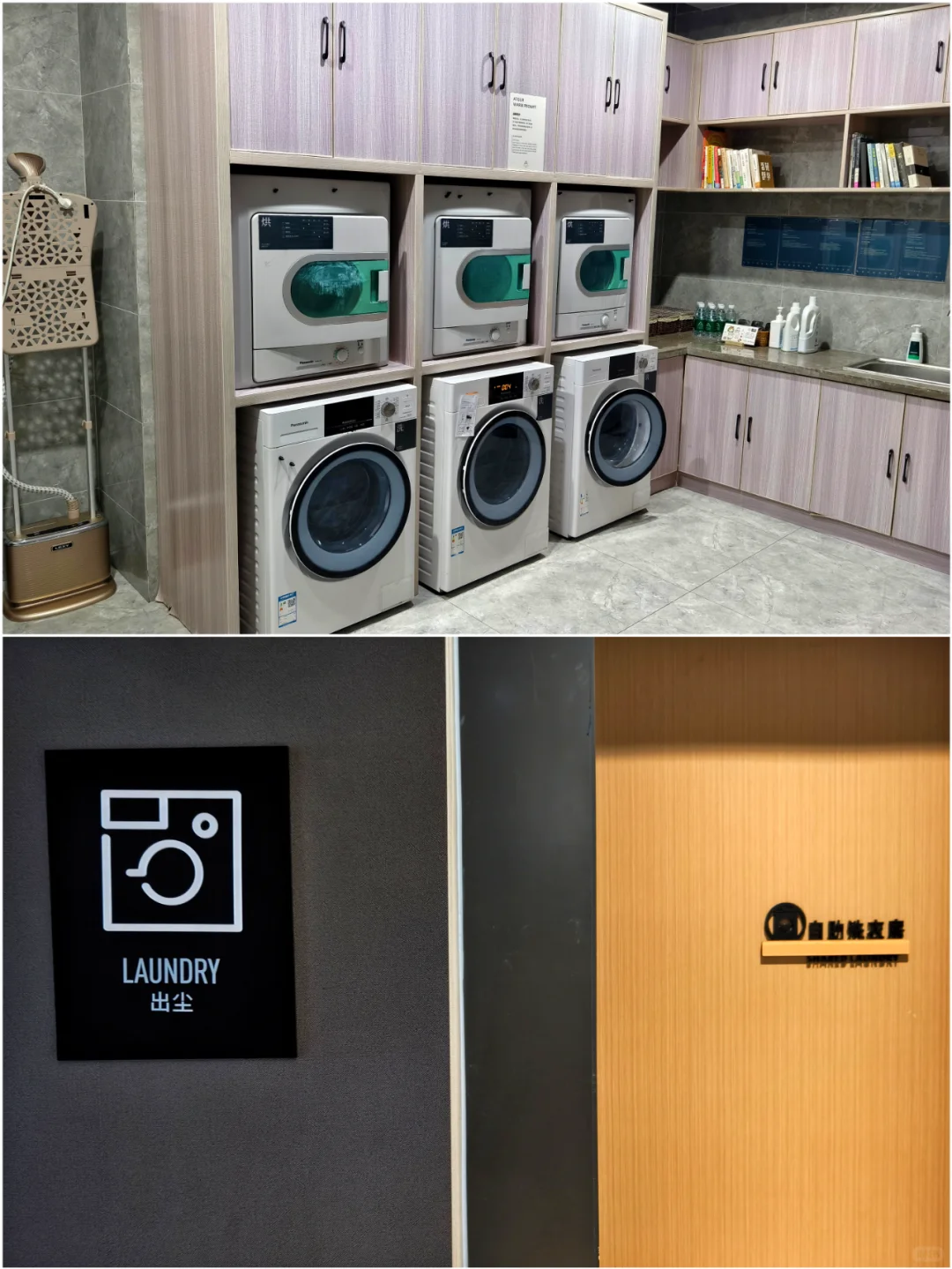 酒店12楼设有自助洗衣房(出尘)和健身房(汗出)。 ( P15~P17)