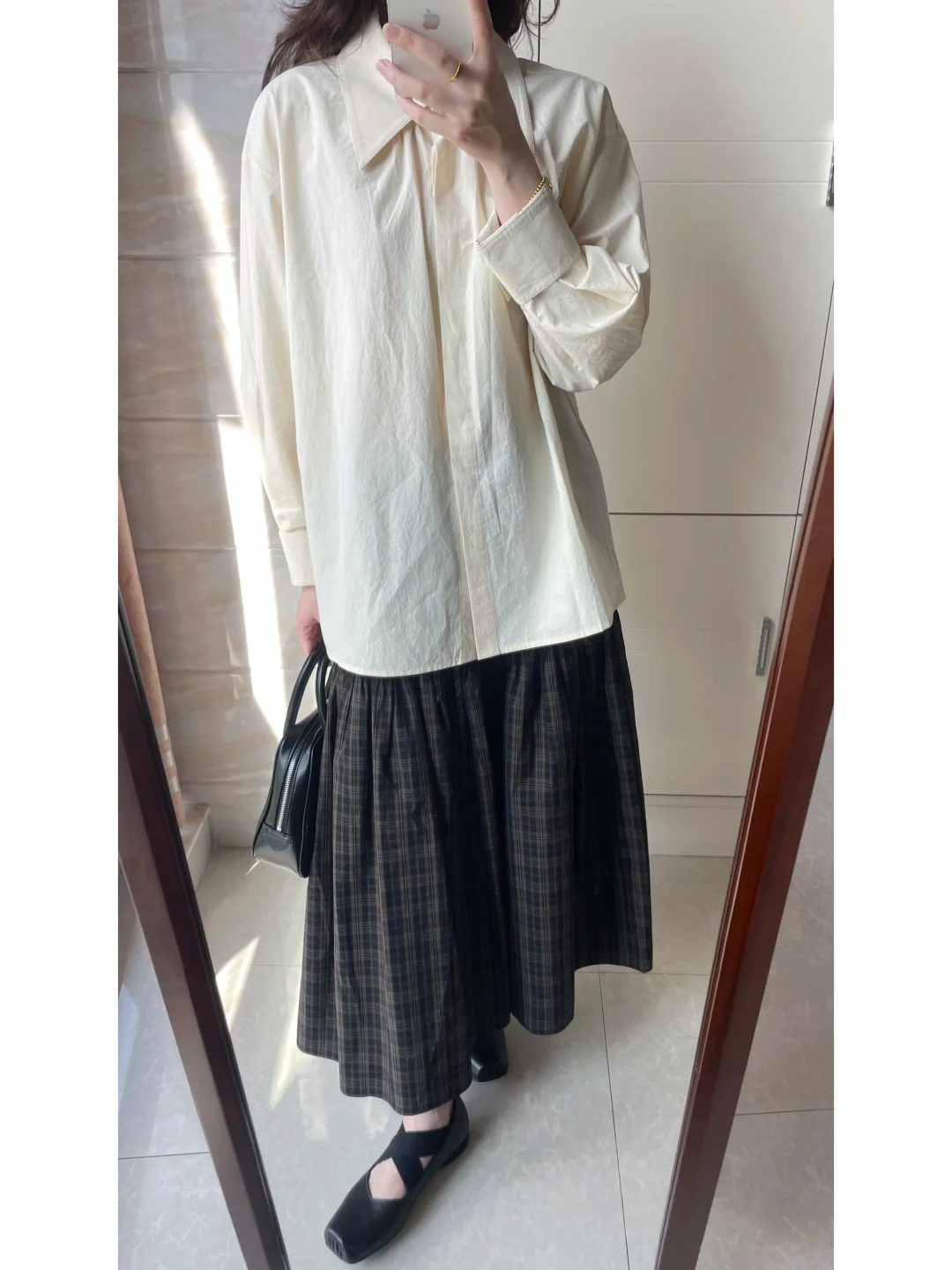 好好看!!衬衫感觉柔柔的和裙子搭配起来感觉有点日系?