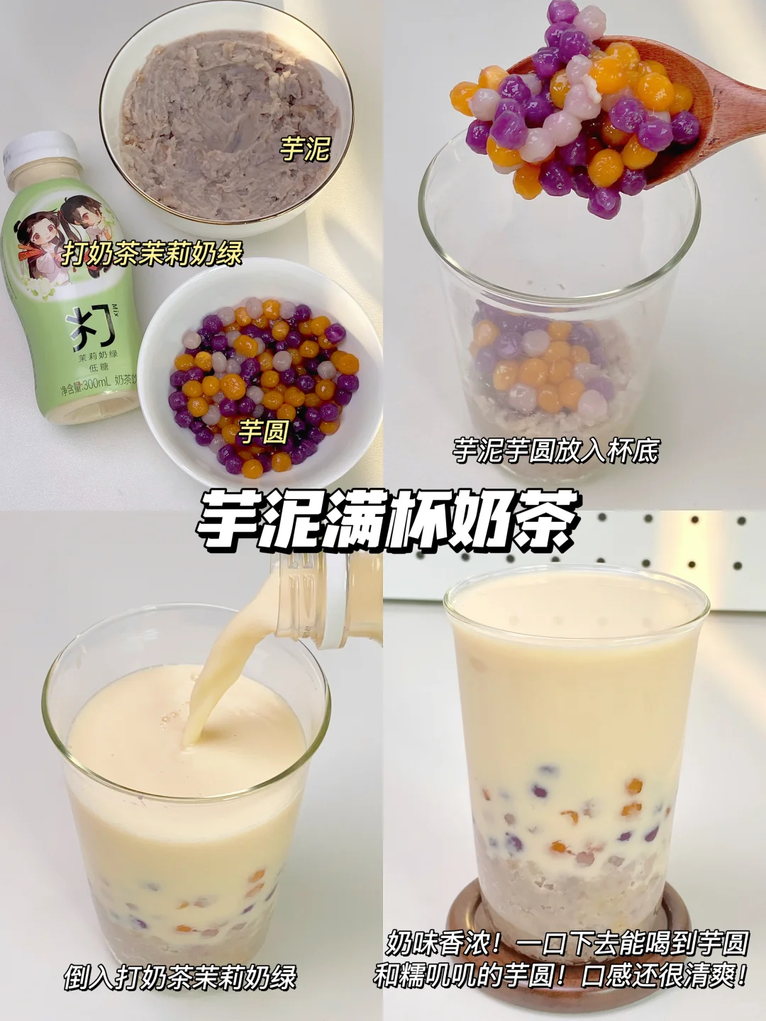 2️⃣打奶茶茉莉奶绿➕芋泥/芋圆