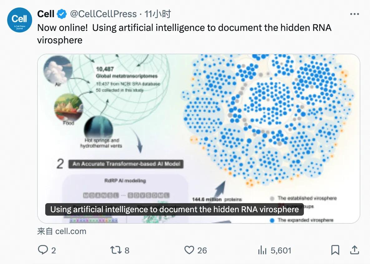 诺奖让AI赢麻了,“颗粒无收”的中国,却让外媒彻底坐不住了! 今年诺贝尔奖,最大的赢家,不是某个科学家,而是AI。诺贝尔奖连续两天都颁给了AI,最重量级的化学奖和物理学奖得主,也全都和AI有关。正当全世界都在欢呼“AI时代已经到来”的时候,没想到反而是在诺奖上“颗粒无收”的中国,吸引了大量外媒的关注。 原来,国际顶级期刊《Cell》在最近发布了阿里云与中山大学合作的最新科研成果,中国人率先利用AI技术,发现了180个超群、16万多种全新的RNA病毒。 消息一出来,外媒开始坐不住了。要知道,今年诺贝尔化学奖的得主,就是因为利用AI在蛋白质结构预测上取得了关键突破,因此才拿下了诺贝尔化学奖。 阿里云和中山大学在《Cell》上发布的研究成果,发现的病毒种类是已知病毒种类的近30倍。人类原来已知的RNA病毒种类只有5000多种,中国团队却用AI发现了16万种全新病毒,相当于在原来的地基上,从头建造起了一座科学大厦。 这项技术有多牛呢?传统方法需要几天到几周才能发现的病毒,用中国研究团队自研的LucaProt模型,只需要几百毫秒到几秒就能精准识别,甚至识别出迄今为止最长的RNA病毒。 中国人在病毒学上的重大技术突破,可以说具有里程碑式的意义。从此人类能够识别发现更多的病毒,能够构建相关的学说,从而拯救更多的生命。 更让外媒吃惊的是,中国人竟然选择了开源这项技术,造福更多的人类。要清楚,获得了诺贝尔化学奖的得主,都没有选择开源自己的AlphaFold 3模型,因此受到了全球650多名学者联名批评,哪知道中国人格局这么大,外媒不震惊才怪呢!