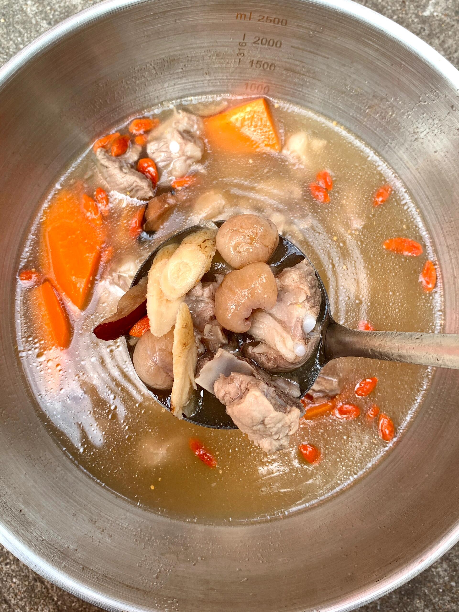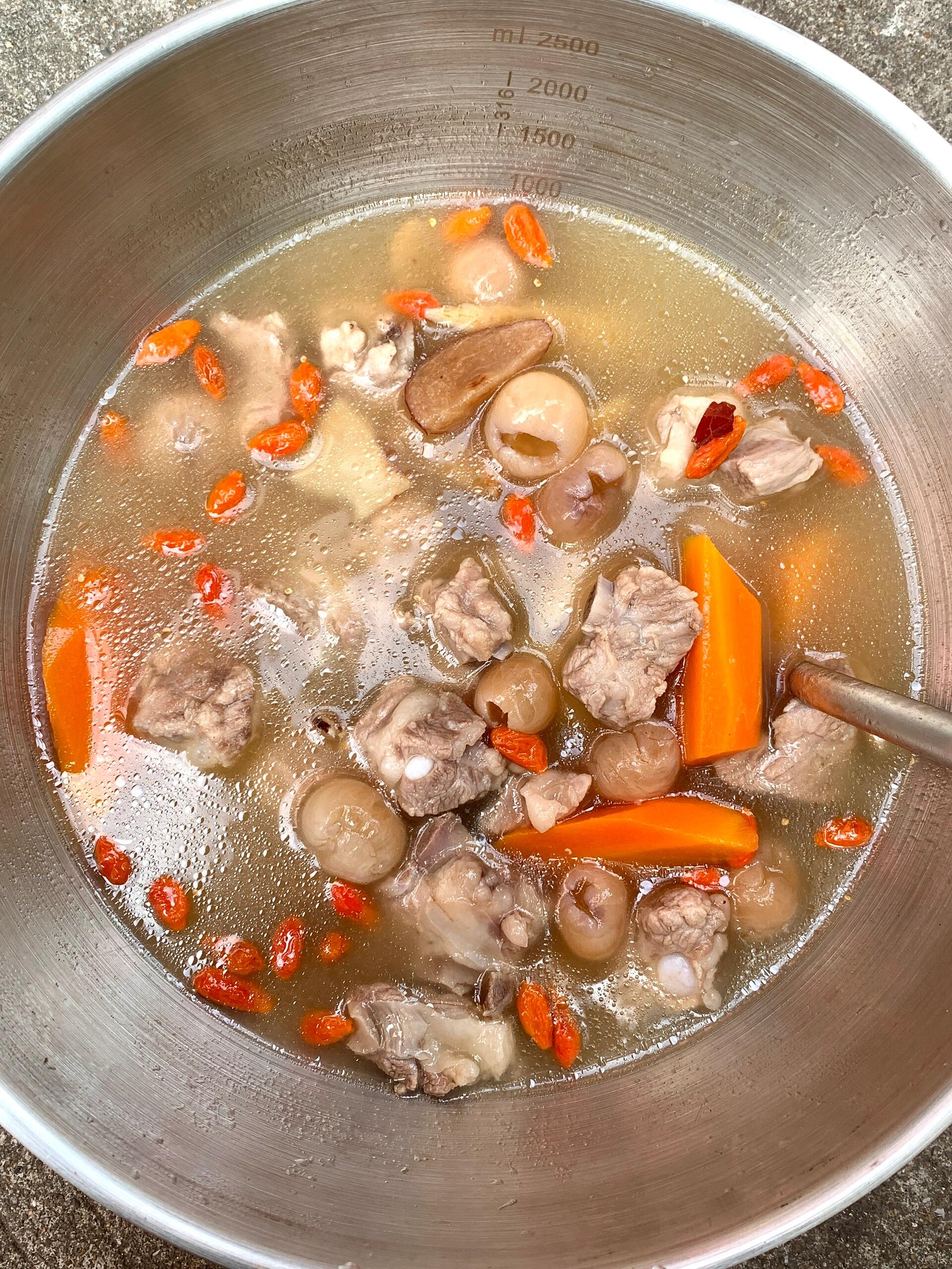 最近天气有点凉了,喝点药材汤暖暖身体 排骨药材汤,放了很多种药材呢喝起来好鲜美 还加了点胡萝卜有独特的香气,快试试吧!! 食材:排骨,胡萝卜,黄芪,麦冬,桂圆,玉竹,土茯苓,红枣,枸杞 调味:盐适量 做法:排骨冷水下锅加料酒焯水三分钟捞出洗净浮沫。药材泡水十分钟洗净灰尘,水开下排骨胡萝卜和药材煮三十分钟。加调味煮十分钟放枸杞再煮俩分钟即可。