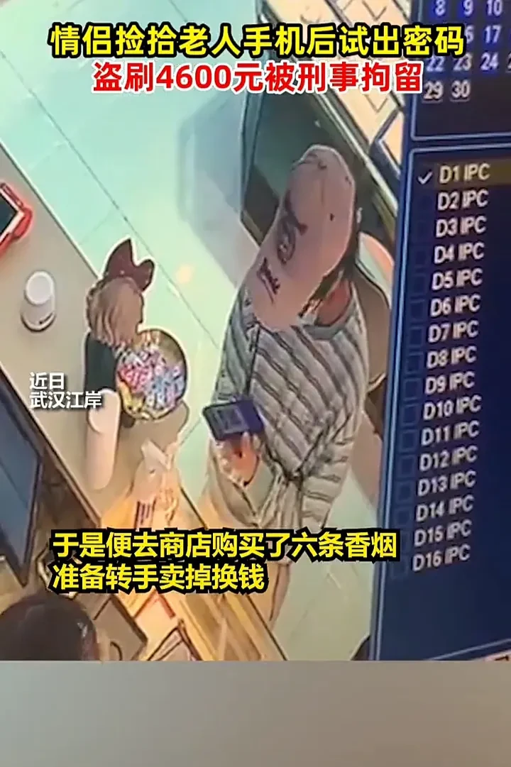 近日,湖北武汉一名老人买菜时不慎丢失了手机,恰好被一对路过的情侣捡到,但他们并没有把手机归还,而是拿回家试出了密码,之后发现手机开通了免密支付,便大肆挥霍买东西,不料最终被抓获。