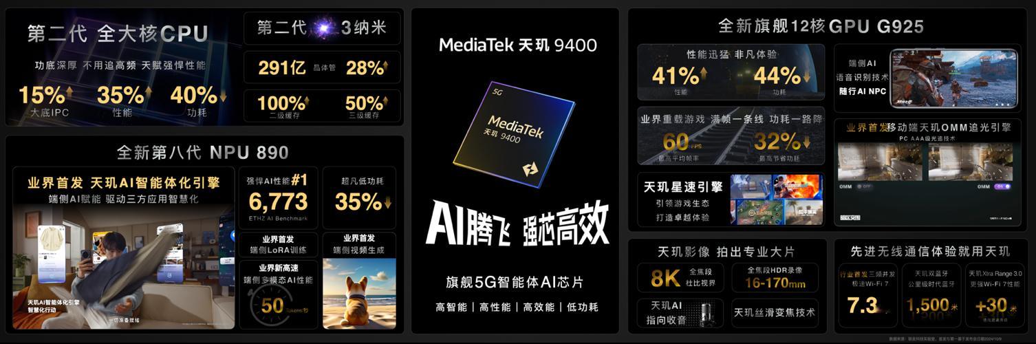 性能大升级:搭载“蓝晶·天玑”9400处理器,蓝厂一直和联发科达成深度战略捆绑 “别说发哥不行,你得看是谁家的发哥”这句话从vivo说出来就不是段子了,调的是真好。支持强大的AI算力,这一次OriginOS 5系统带来高效AI功能体验,满足从大型游戏到AI任务的多场景需求。